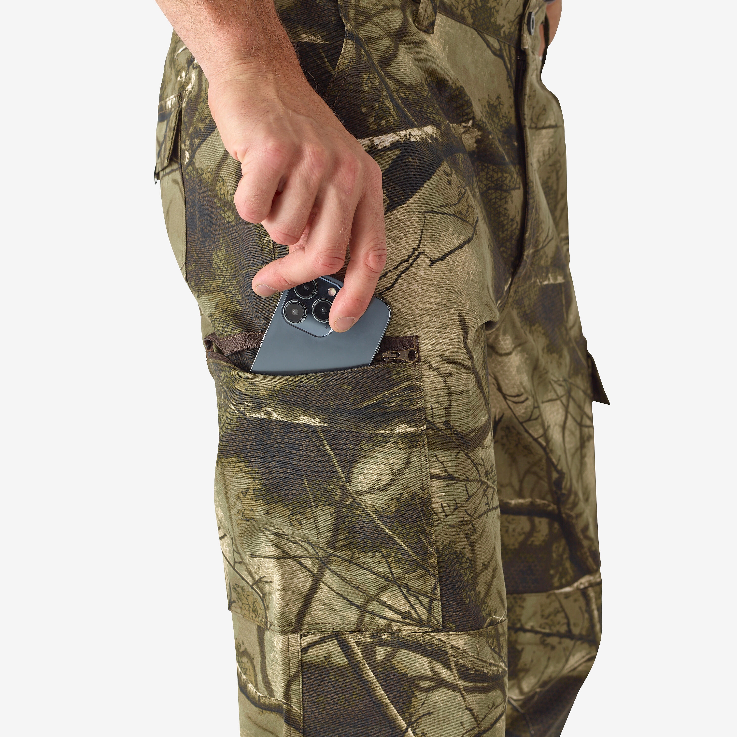 PANTALON CHASSE 100 RESPIRANT SILENCIEUX COTON CAMOUFLAGE TREEMETIC