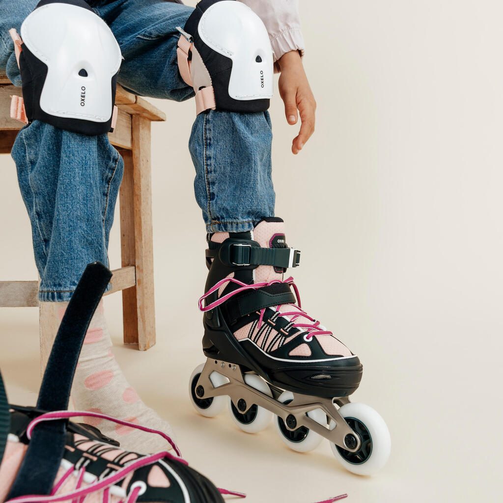 Le set de protections pour les premières sensations de glisse de votre enfant. Confort et sécurité pour débuter le roller, la trottinette ou le skate.