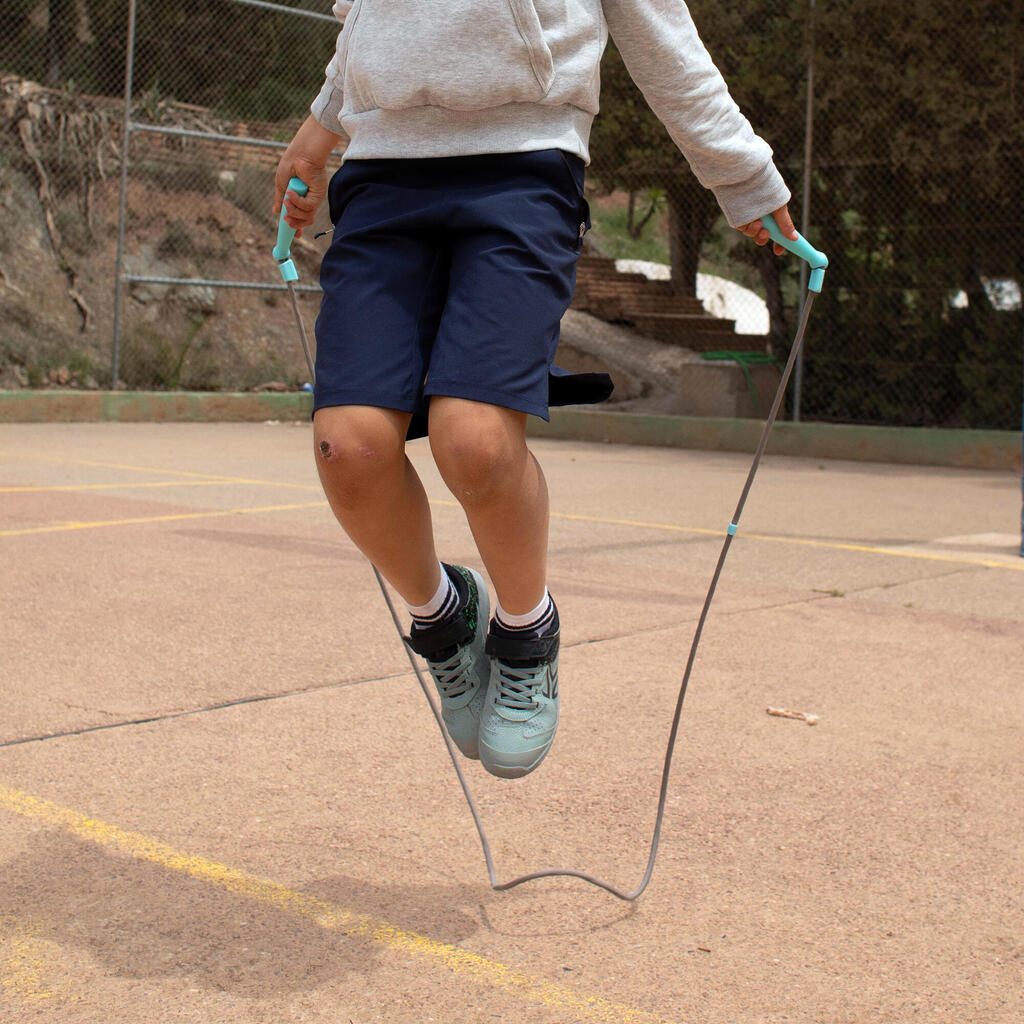 Cette corde à sauter se glissera dans le cartable de vos enfants pour s'amuser dans les cours de récréation. Le petit plus ? Les poignées de couleurs !