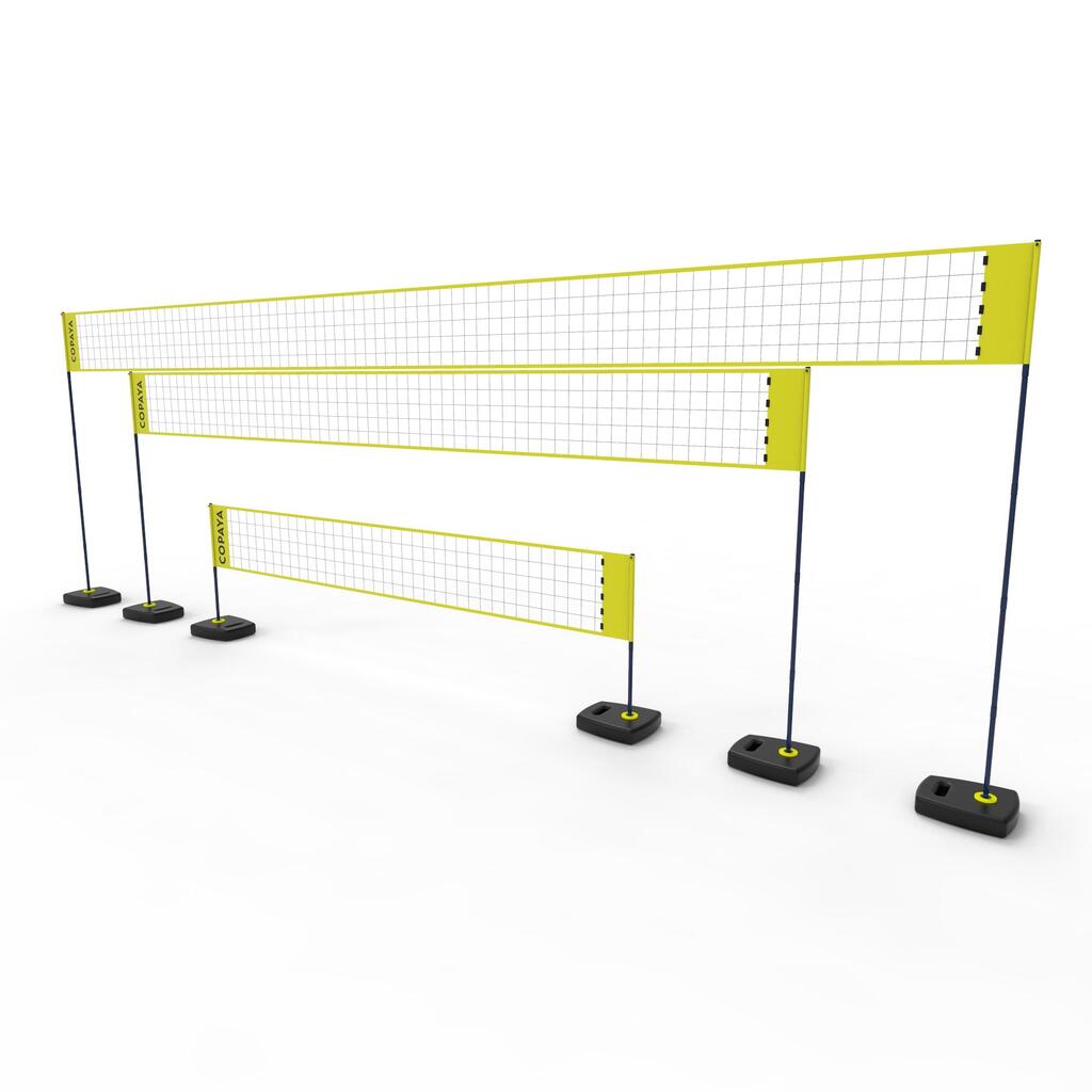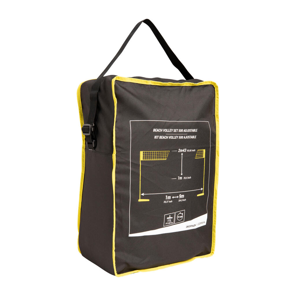Réglable en largeur et en hauteur, emportez ce set de beach volley où vous voulez ! Hauteur de 1m5 à 2m43, largeur jusqu'à 9m. Sac de transport inclus.