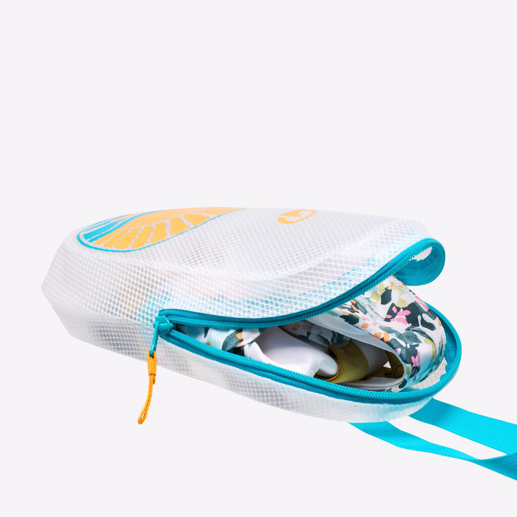 Pratique et résistante à l'eau, cette pochette sert à transporter le matériel mouillé et à protéger vos affaires de l'eau. Avec zon zip, sa poignée et son volume de 3 litres, elle s'emporte partout !