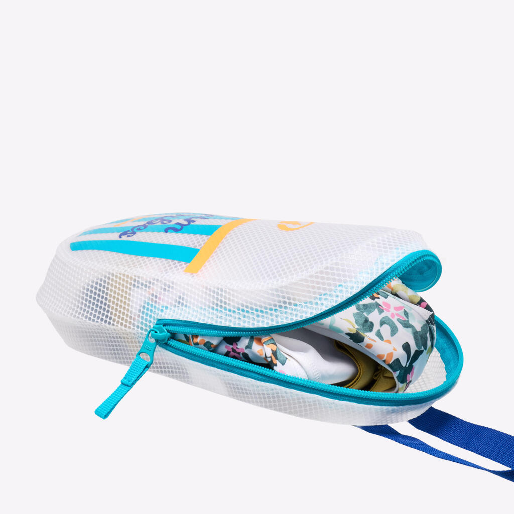 Pratique et résistante à l'eau, cette pochette sert à transporter le matériel mouillé et à protéger vos affaires de l'eau. Avec zon zip, sa poignée et son volume de 3 litres, elle s'emporte partout !
