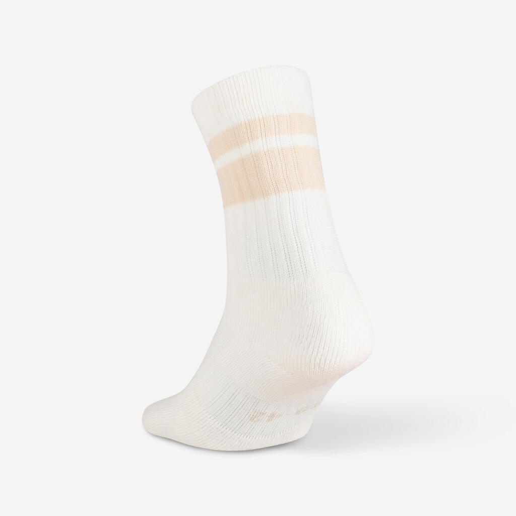 Chaussette de sport avec de la bouclette sur tout le pied pour plus de confort et d'absorption de la sueur. Zone d'aération dessus. Serrage au milieu du pied pour un bon maintien.
