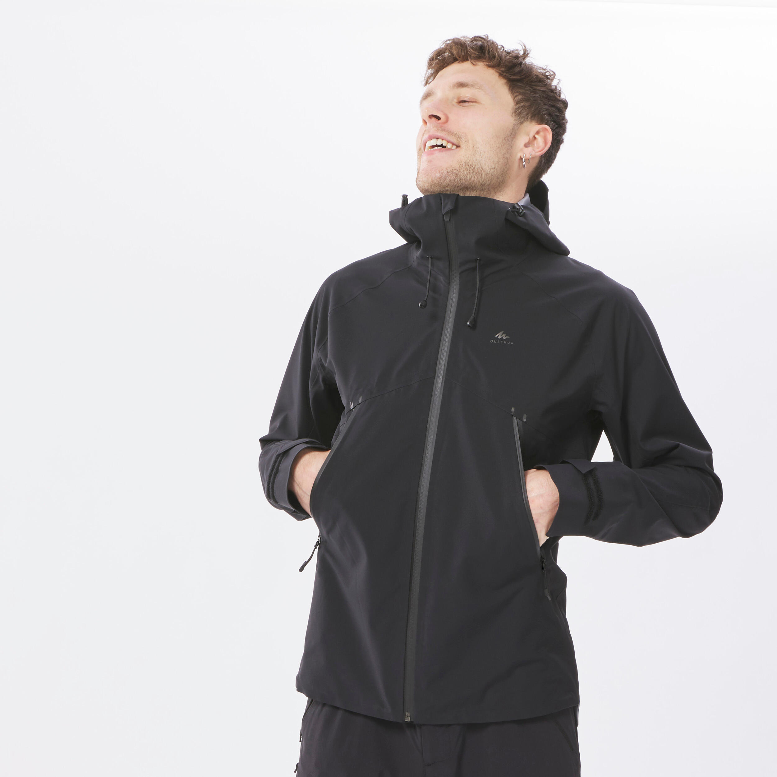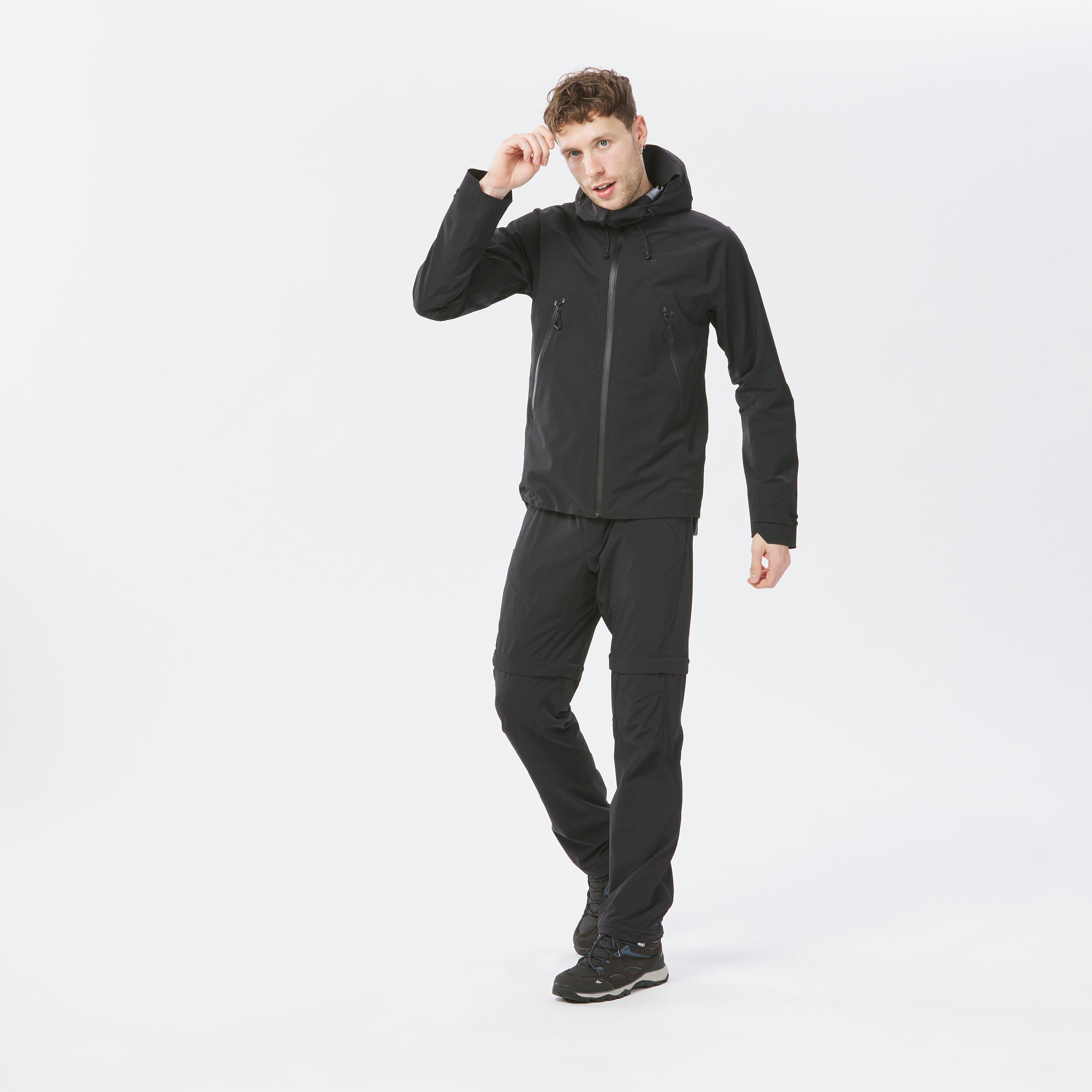 Veste de randonnée montagne imperméable homme, MH500 noir
