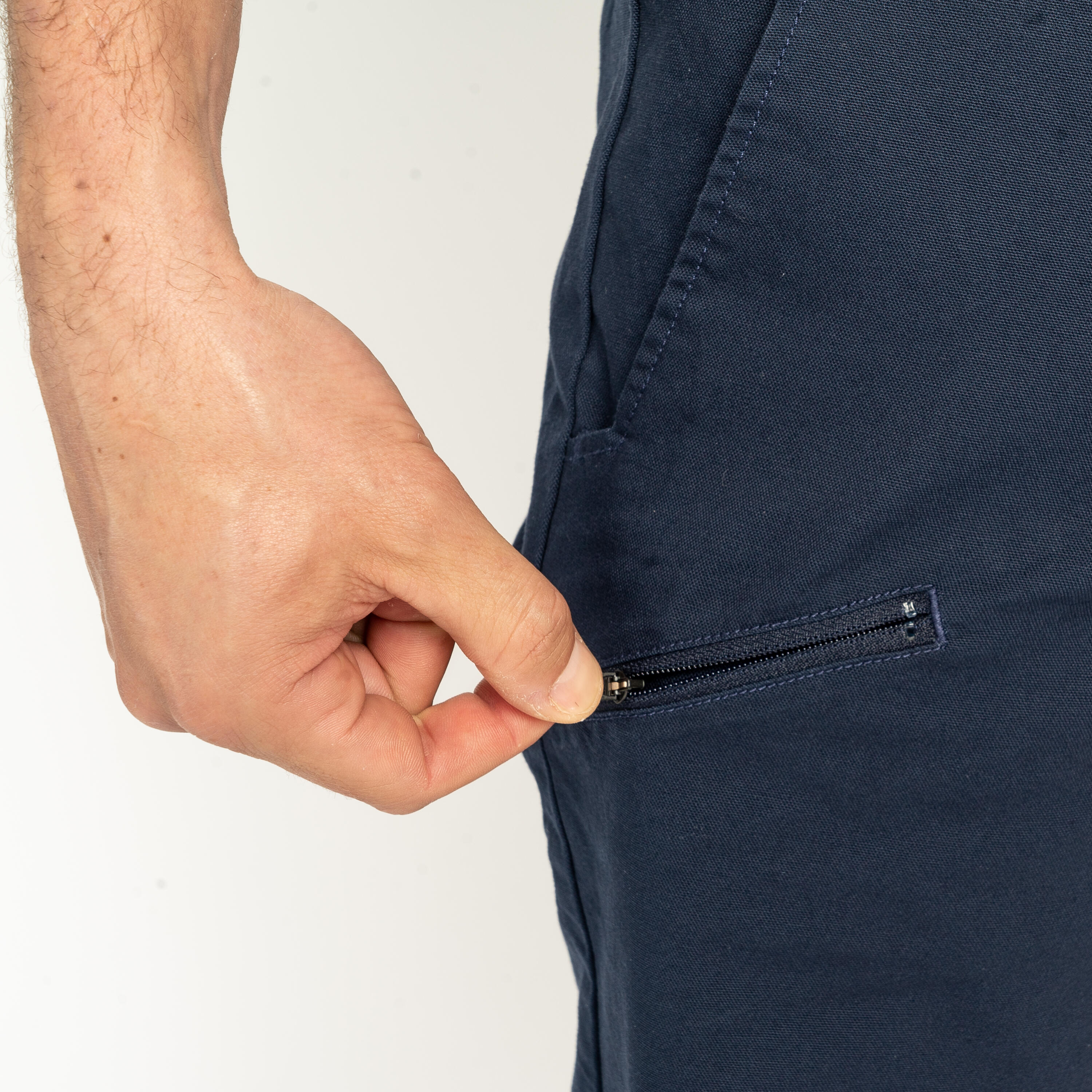 Ce bermuda de voile vous offrira une grande facilité de mouvement grâce à l'élasthane, ainsi qu'une grande praticité avec ses 6 poches dont 2 sécurisées par des fermetures à glissière.