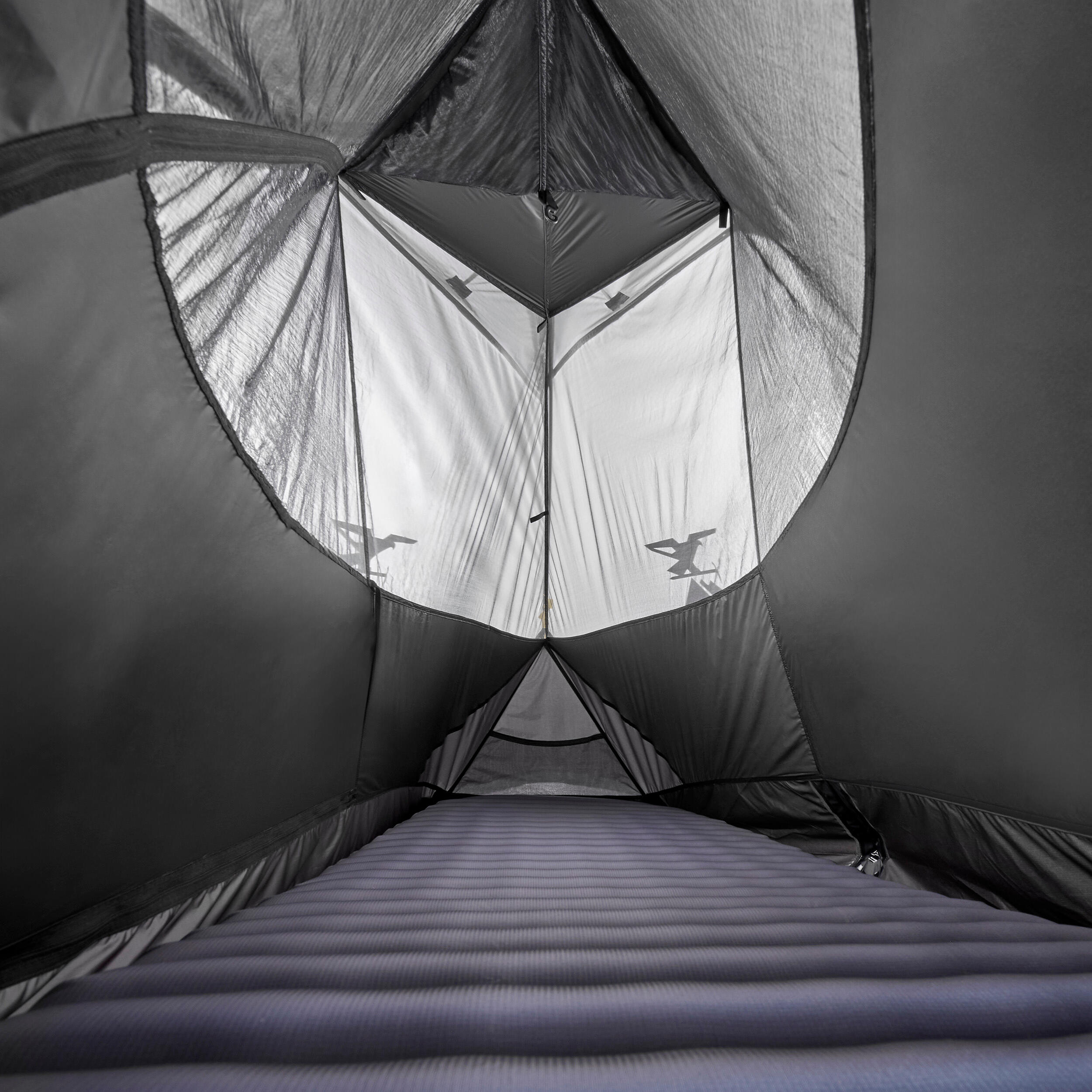 Afin de limiter la condensation à l'intérieure de la tente, celle-ci doit être correctement montée, toiles tendues, sans excès. Zips double-curseur sur la porte pour la maintenir ouverte. L'utilisation des ventilations et une bonne circulation de l'air limitent l'humidité à l'intérieur