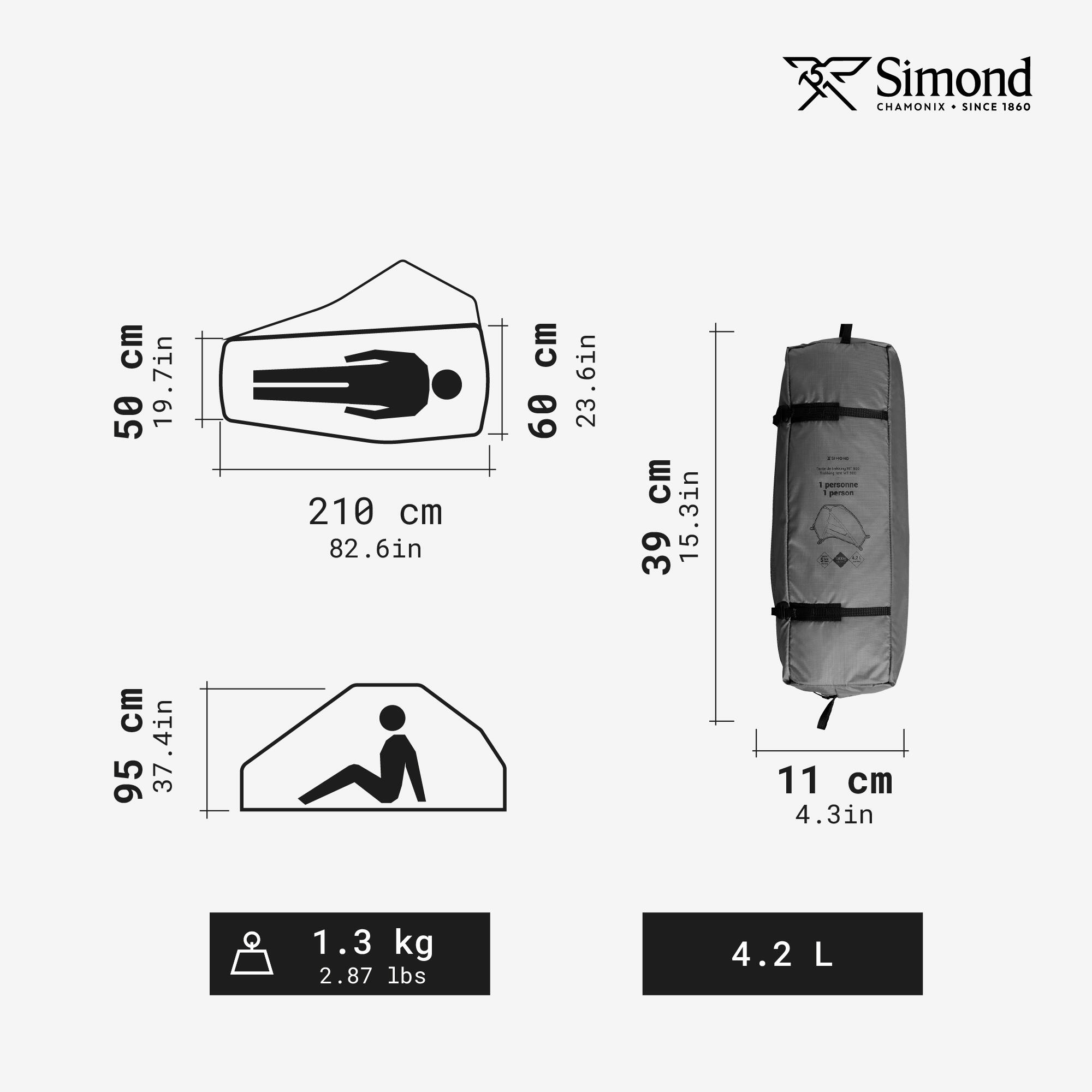 Double-toit polyester (PES) 20 deniers et tapis de sol polyamide (PA) 40D sont en polyuréthane enduit (face intérieure) & silicone (extérieur).