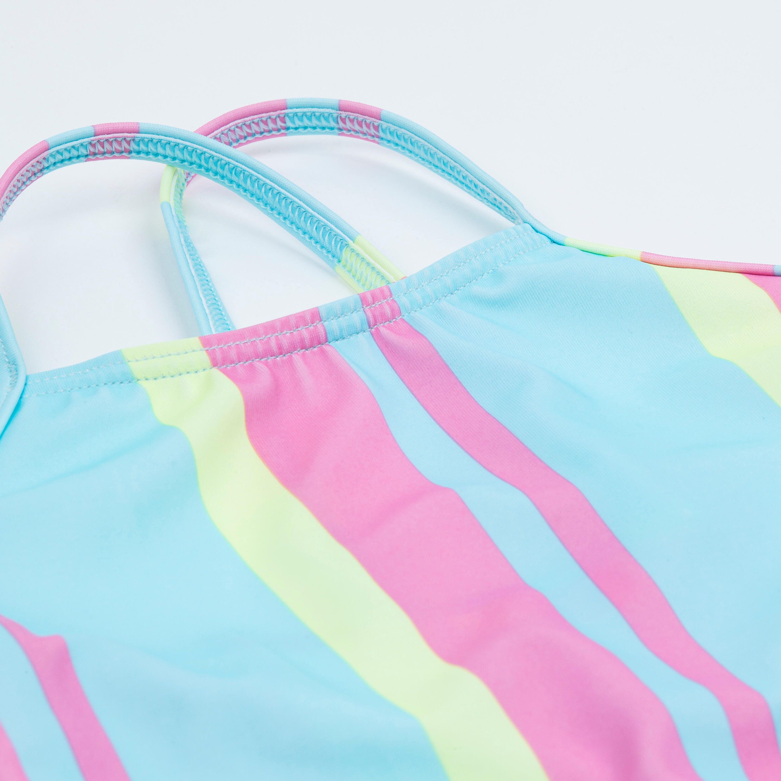 Maillot de bain 1 pièce rayé fille - 100 hanalei bleu rose