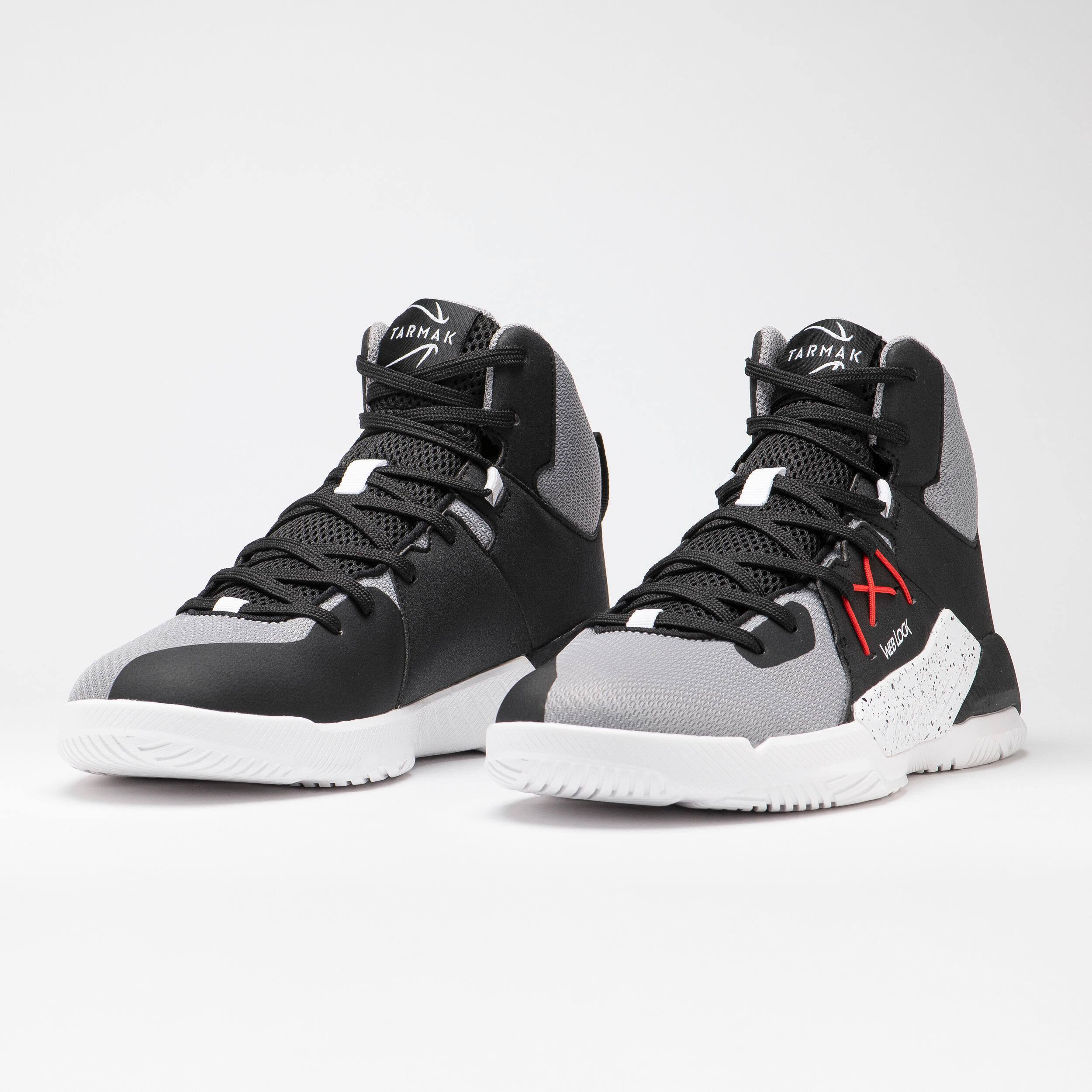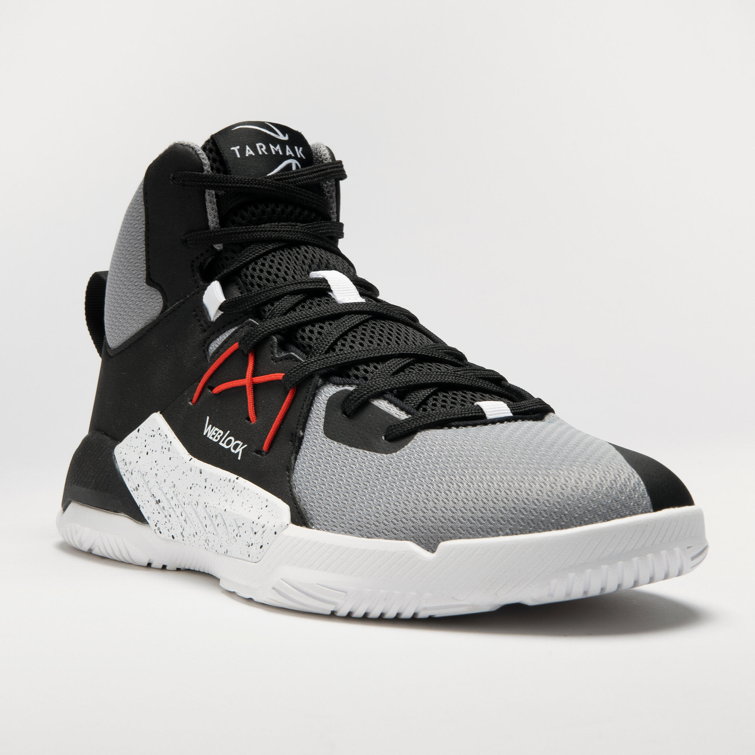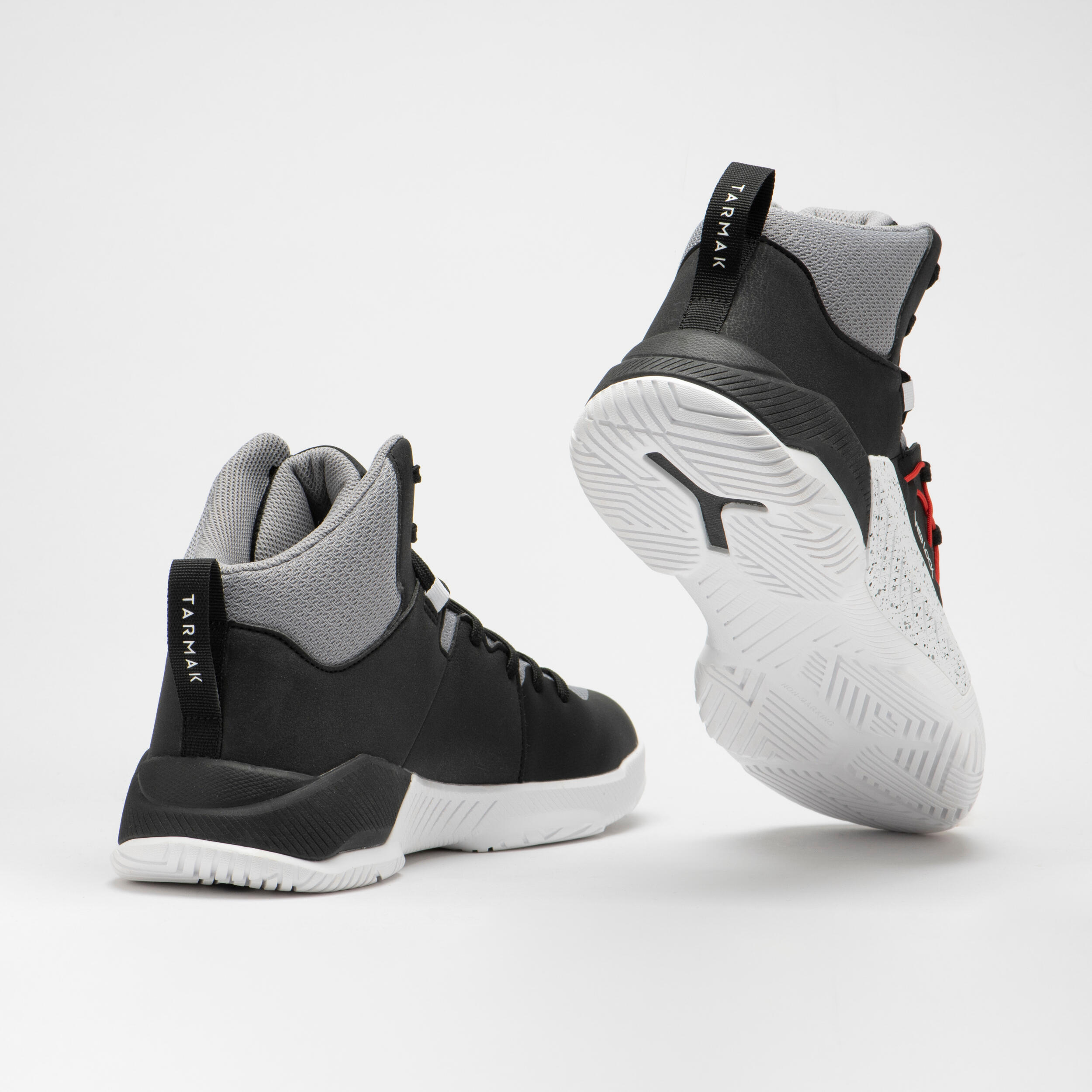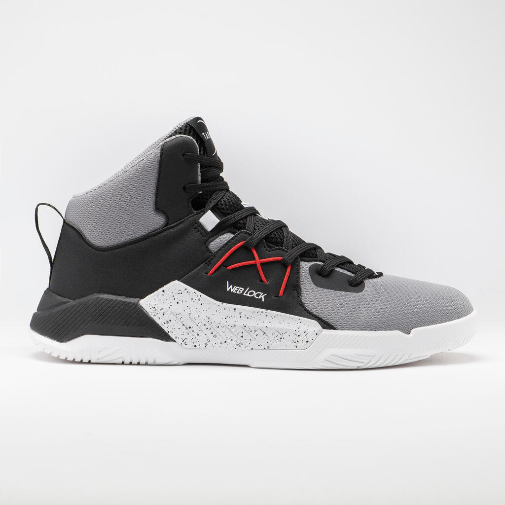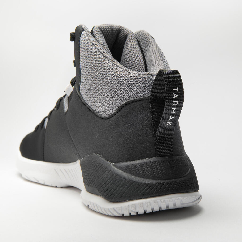 Cette chaussure de Basketball Tarmak est dotée d'une semelle avec un amorti en mousse injectée (EVA) plus important au talon et une tige haute avec des zones aérées