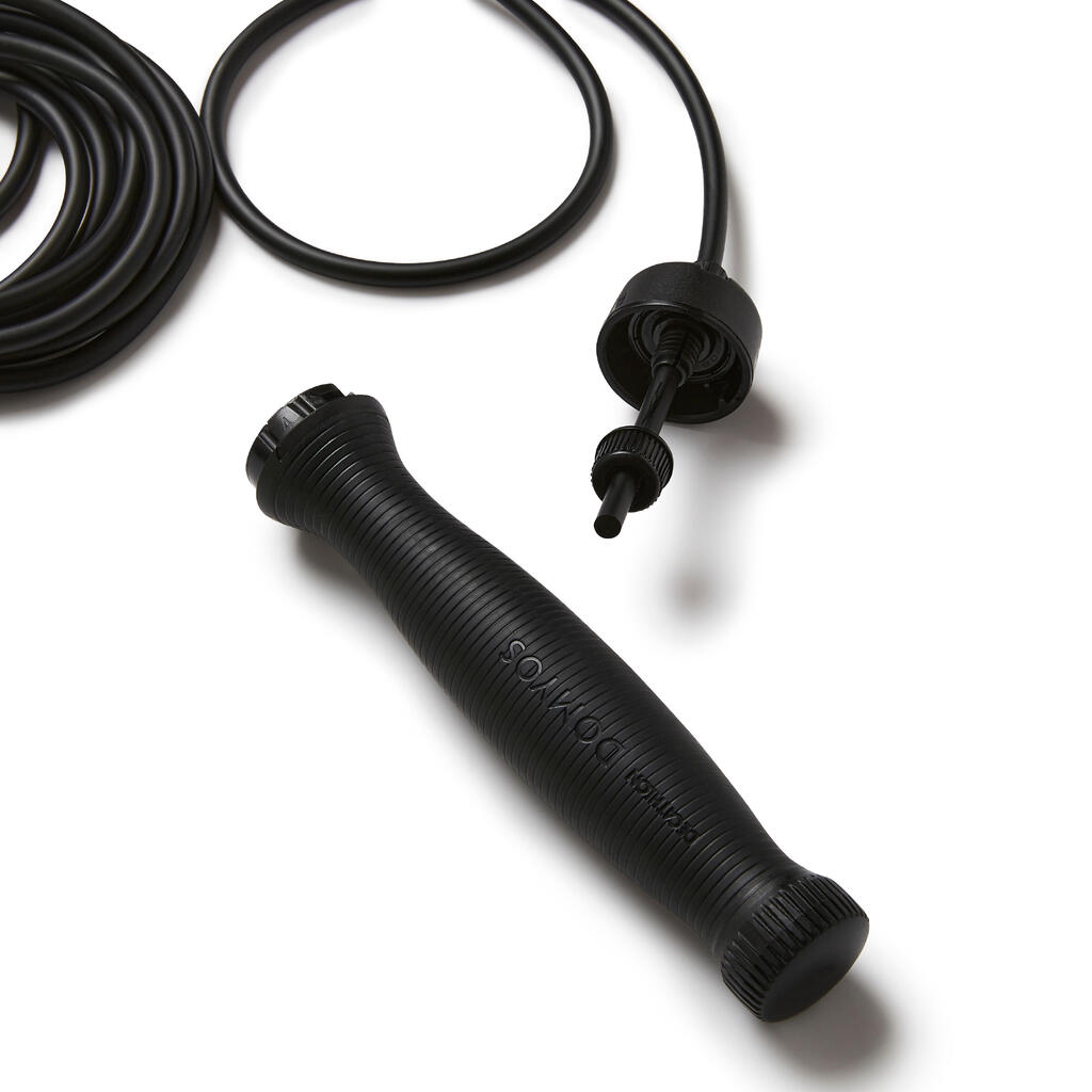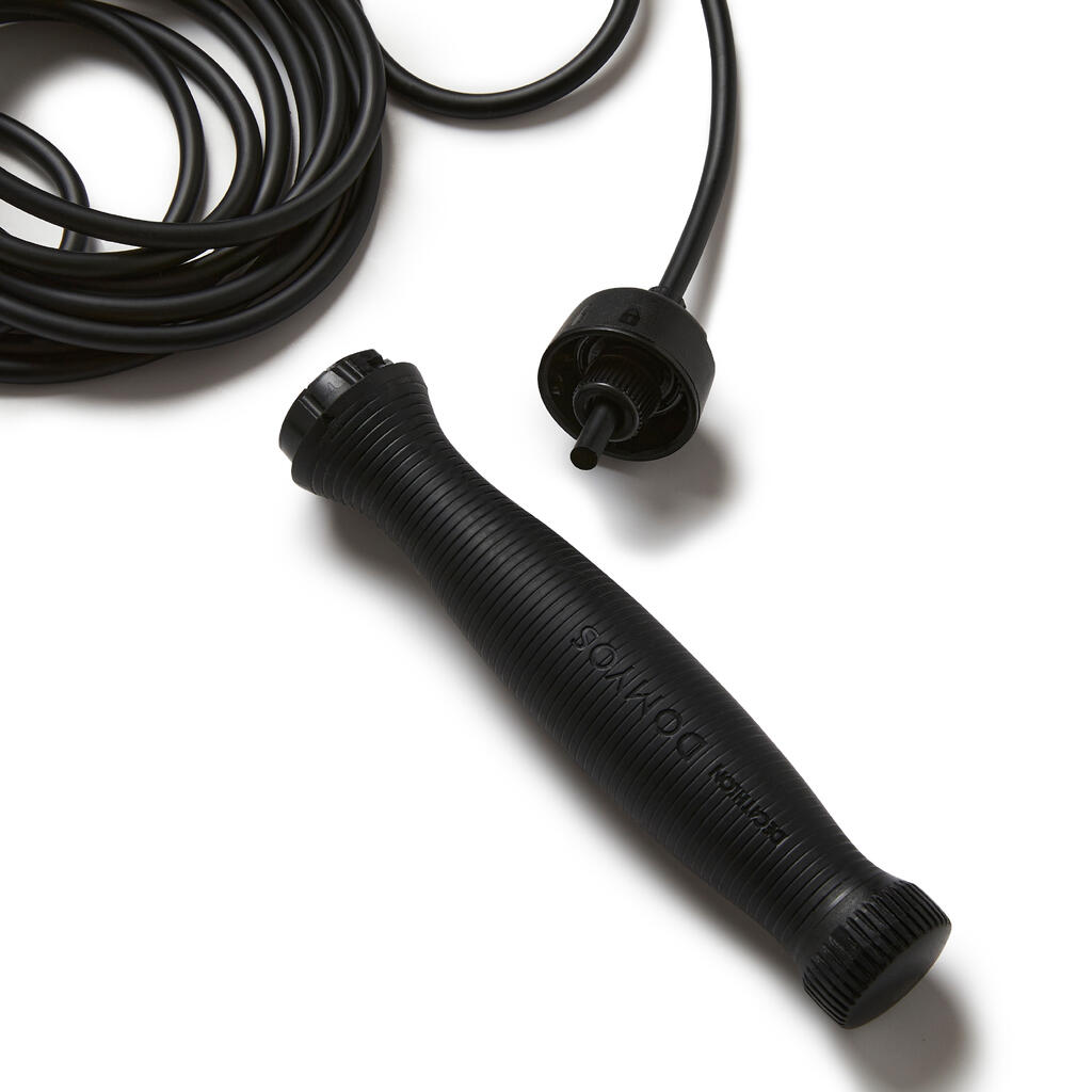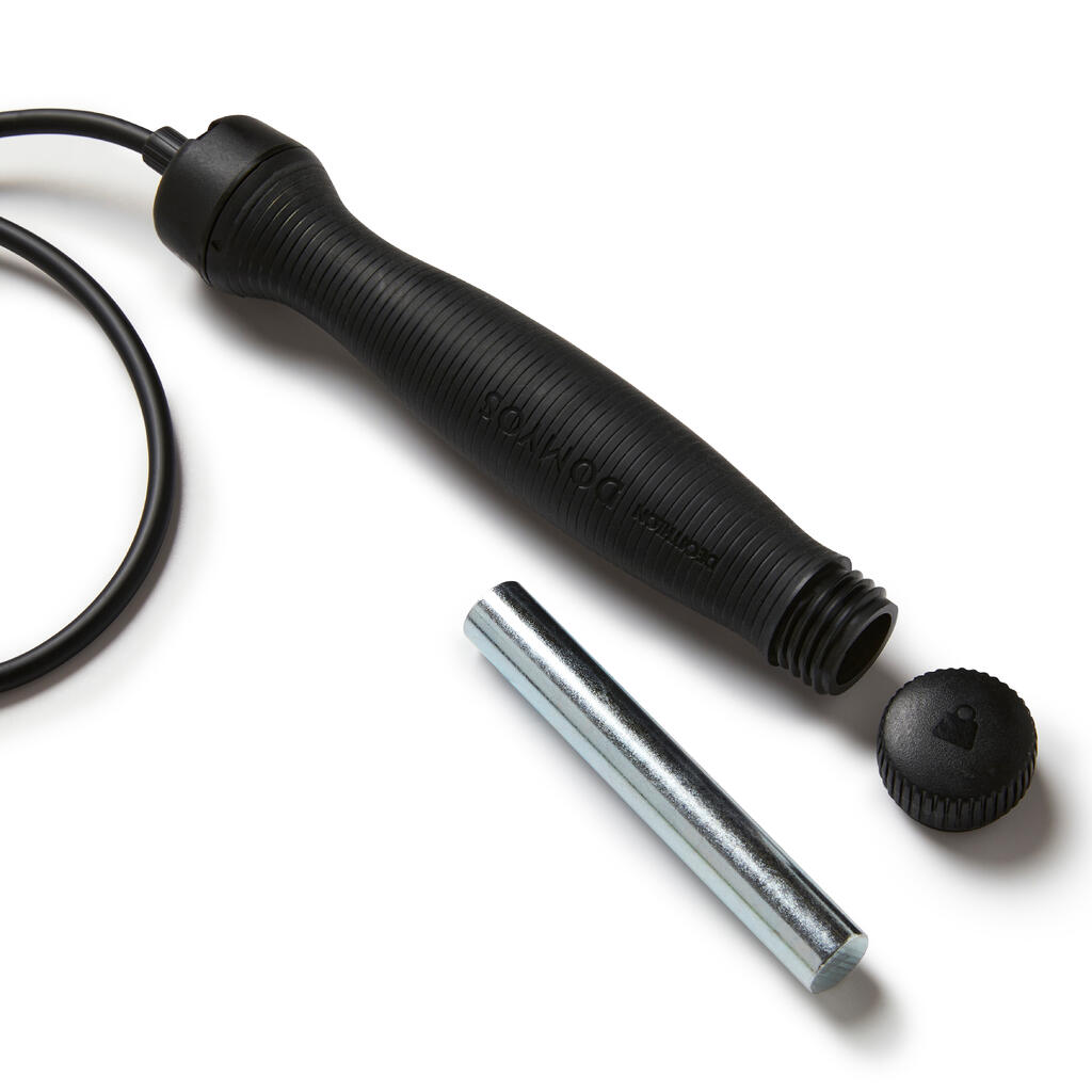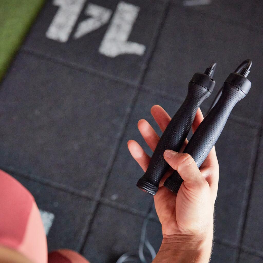 La corde à sauter 700 lestée est idéale pour mettre plus d'intensité dans sa pratique et renforcer le travail cardio et musculaire. Facile à transporter, elle se pratique partout et tout le temps.