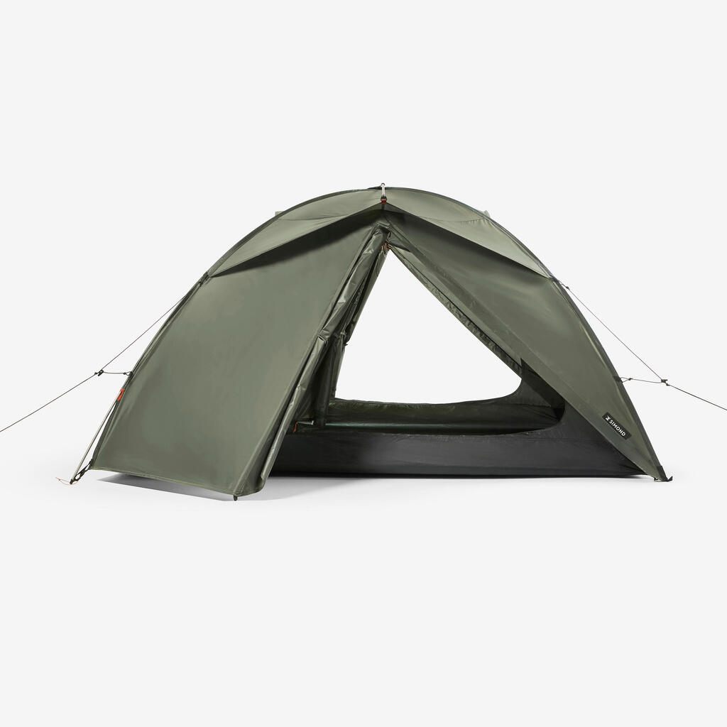 Chambre en moustiquaire pour la ventilation et en tissu déperlant pour protéger de la condensation et des courants d'air. Il y a une grande ventilation à l'avant de la tente, ainsi qu'une ventilation aux pieds.