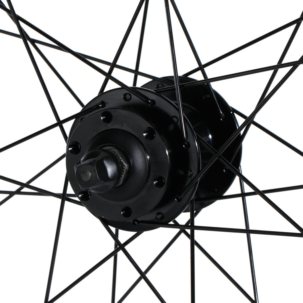 Taille jante : 27,5" Diamètre ETRTO : 584x19c Matière de la jante : Double paroi Aluminium 6063 / Noire Type de jante : Manchonnée Diamètre du trou de valve : 8,5mm Nombre de rayons : 28 Rayons : Acier / Noir / 2mm Type de montage : croisement par 2 Type de roulements : cone cuvette à bille (diam=6,35mm - 1/4") Compatibilité Freinage : Disque OLD : 9x100MM Type d'axe : attache rapide QR Poids : 1 142 grammes (avec serrage rapide et fond de jante)