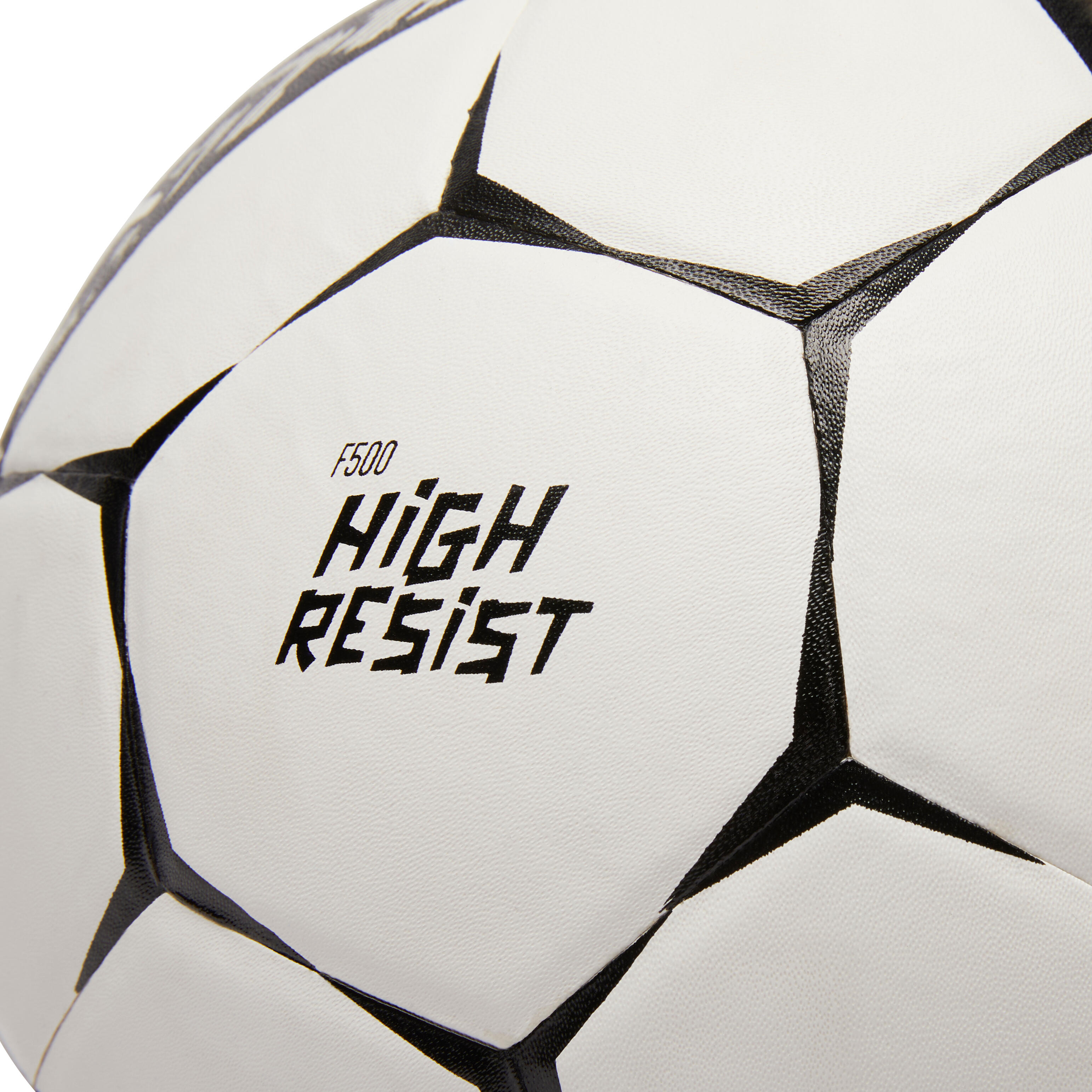 Pour ce ballon de football F500 HIGH RESIST, nos équipes de conception ont choisi un revêtement en polyuréthane laminé pour plus de résistance et un ballon waterproof.