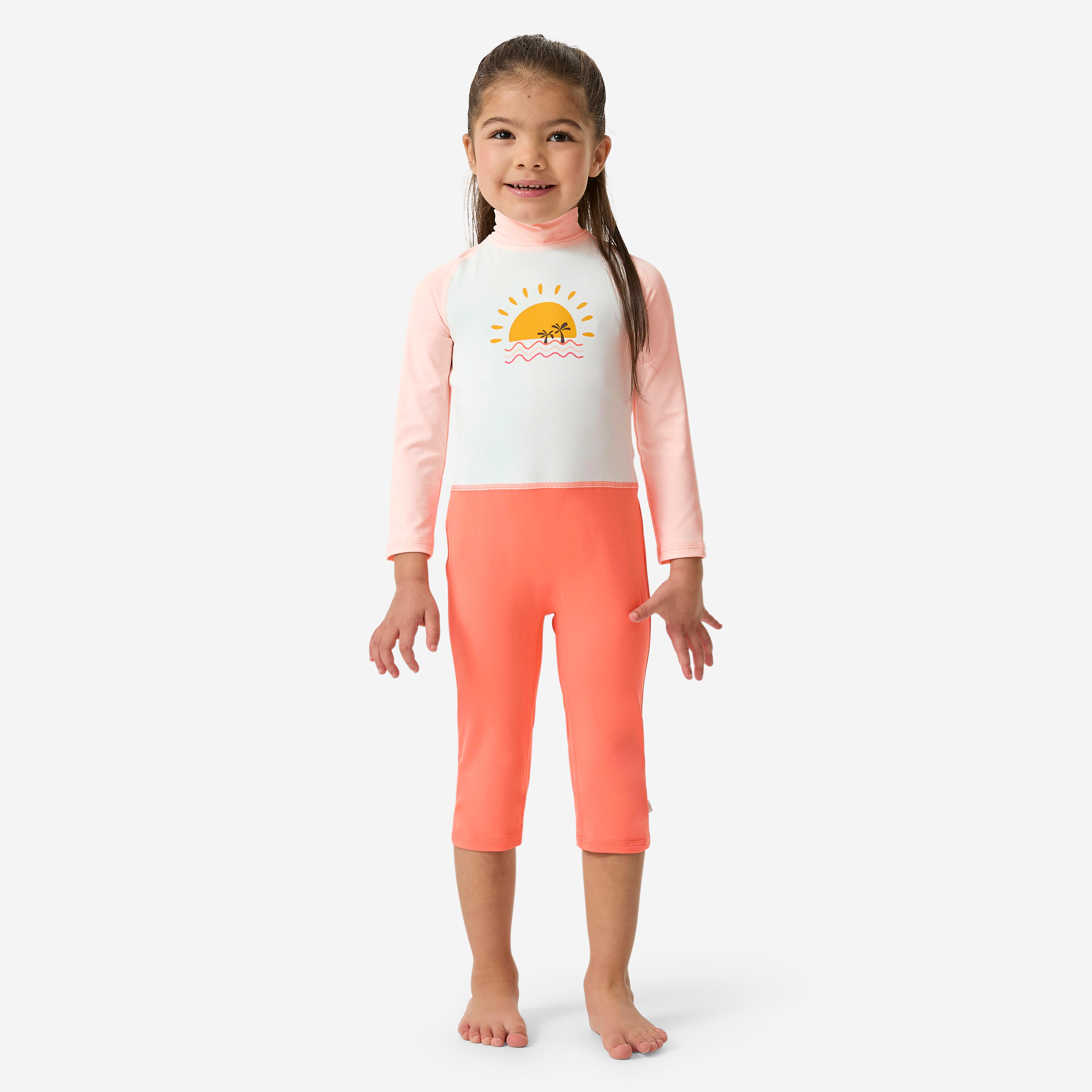 Combinaison de natation anti uv bébé / enfant manches longues rose imprimé