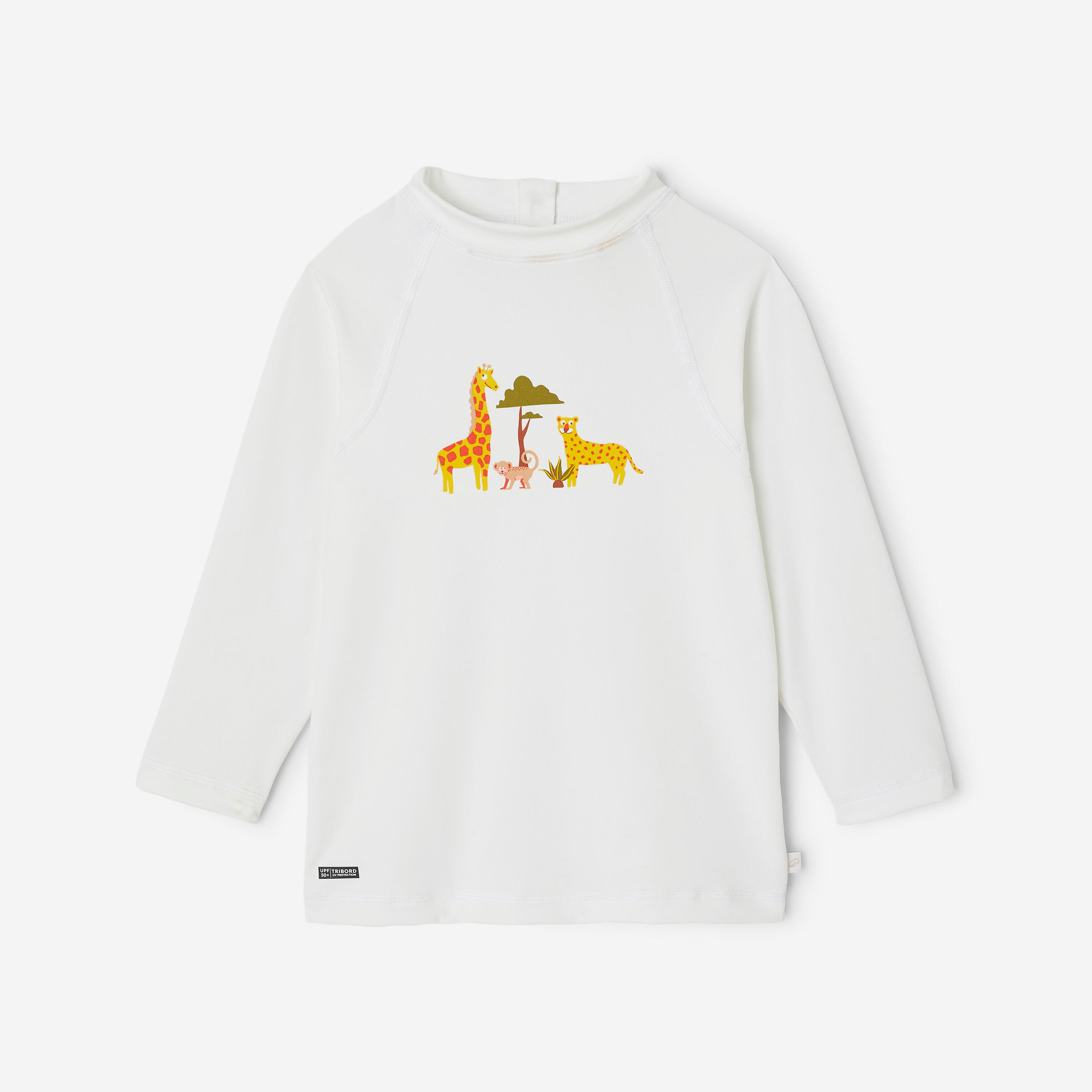 Avec ce tee shirt anti UV manches longues, les bébés sont protégés du soleil. À la piscine ou à la plage, ils peuvent jouer en toute tranquillité !