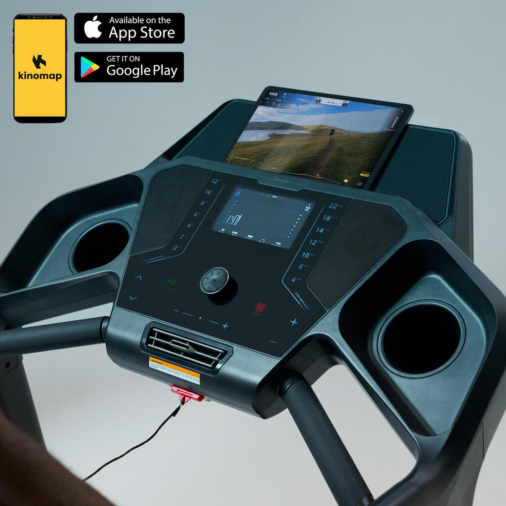 Ce tapis est compatible avec l'application Kinomap qui vous propose une expérience unique avec des entraînements interactifs. La tablette est non incluse.