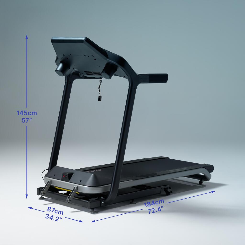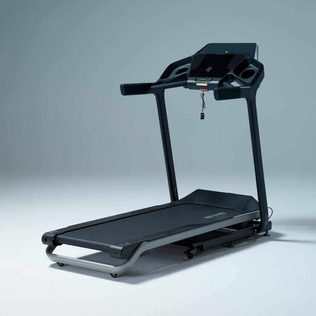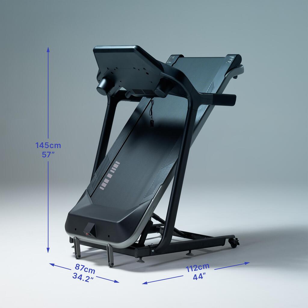 Toutes les informations utiles sont visibles en permanence : temps, distance, vitesse, allure, inclinaison, calories et BPM si un capteur cardio est connecté en bluetooth ou ANT+.Des raccourcis de vitesse et d'inclinaison et la télécommande magnétique vous permettent de doser facilement votre effort.