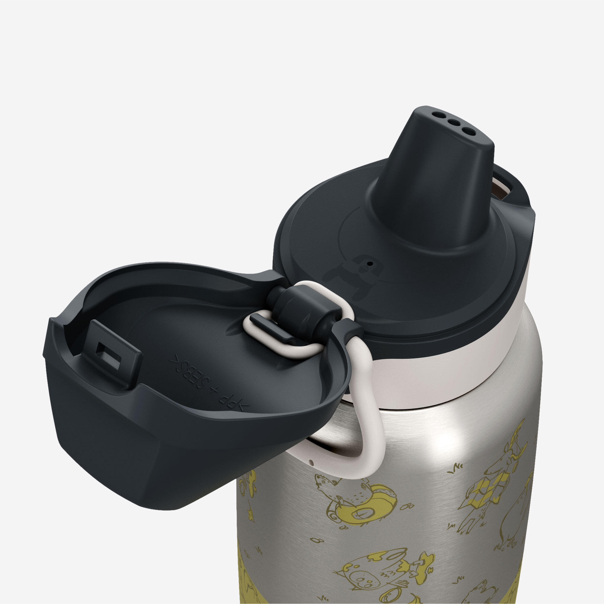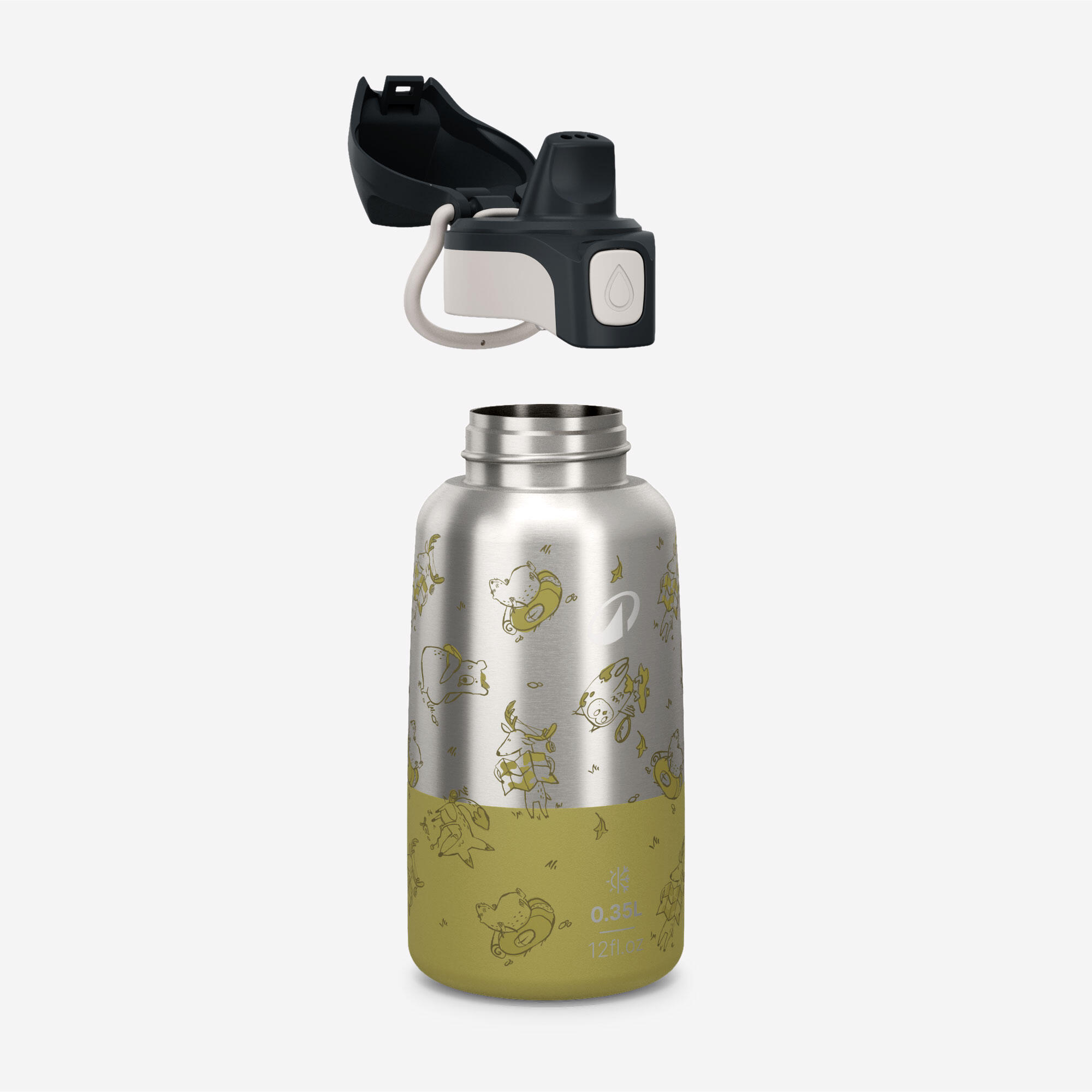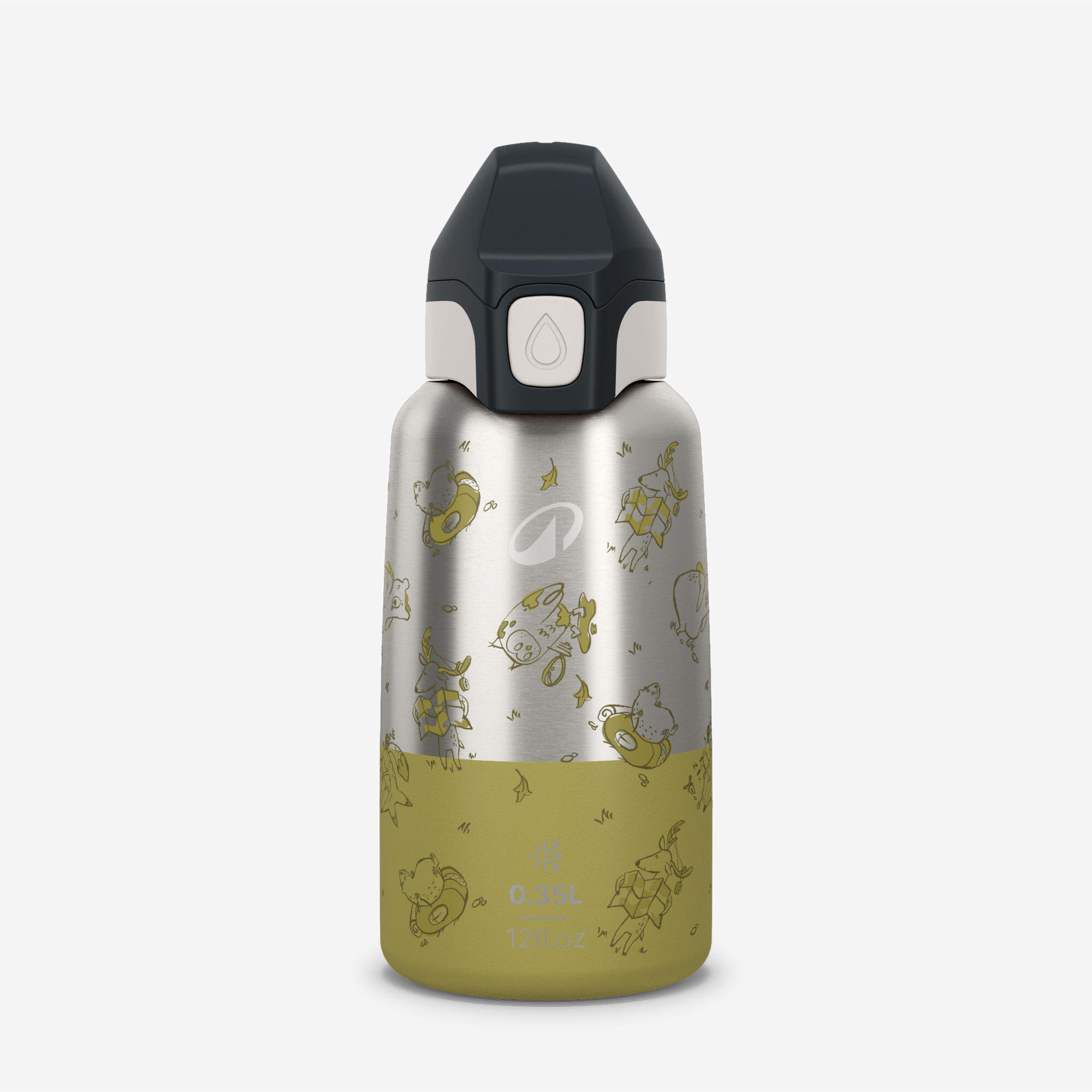 Gourde enfant isotherme 0,35L en acier inox avec bouchon instantané de randonnée