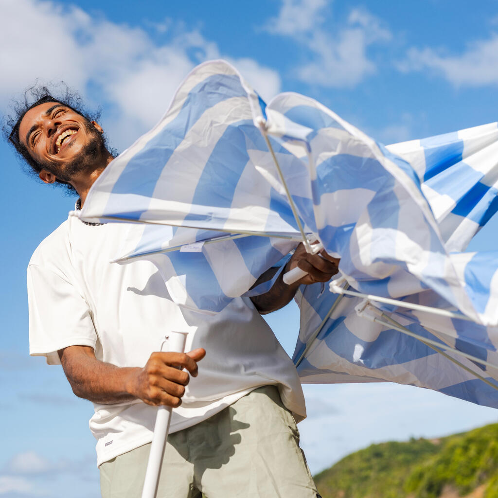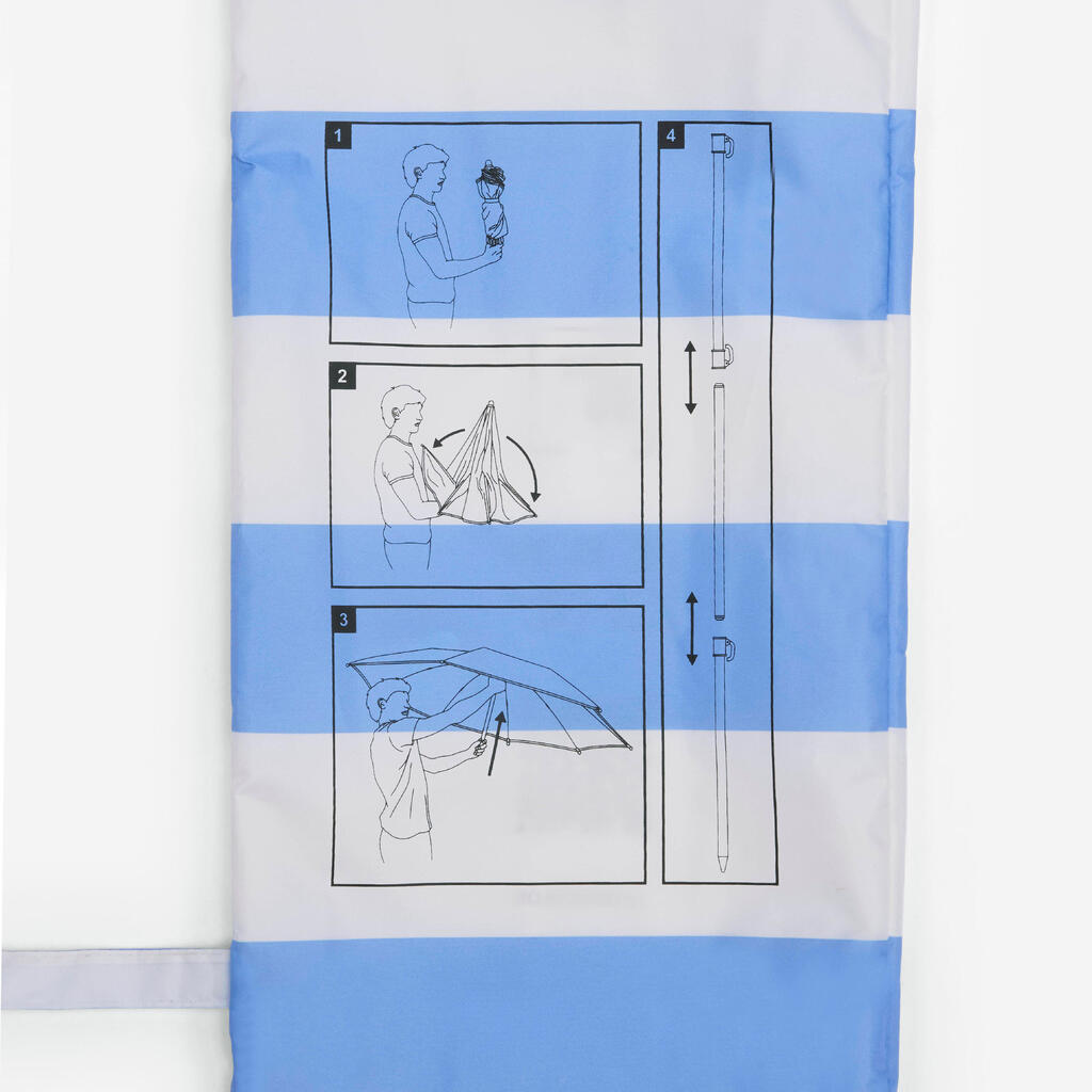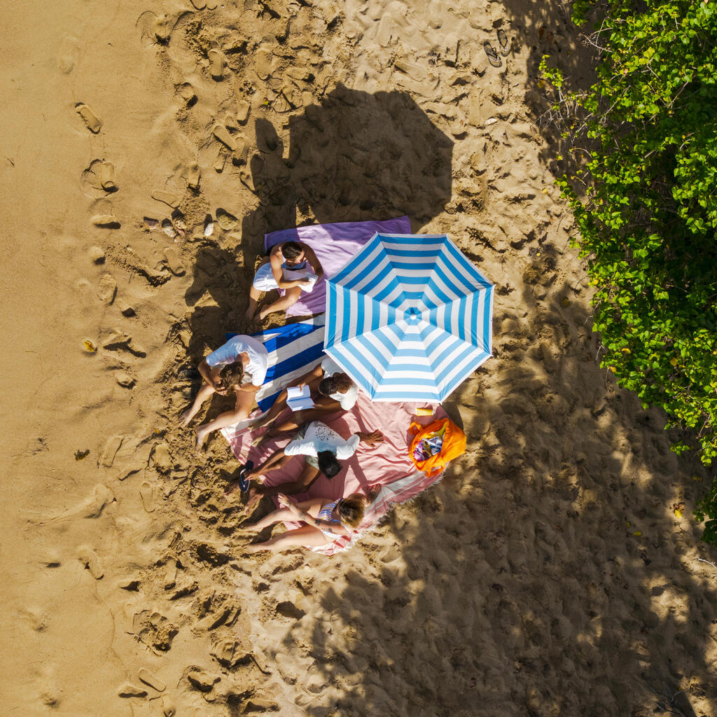 Protégez vous du soleil sur la plage (UPF50+) ! Résiste au vent jusqu'à 20Km/h et abrite jusqu'à 2 adultes.