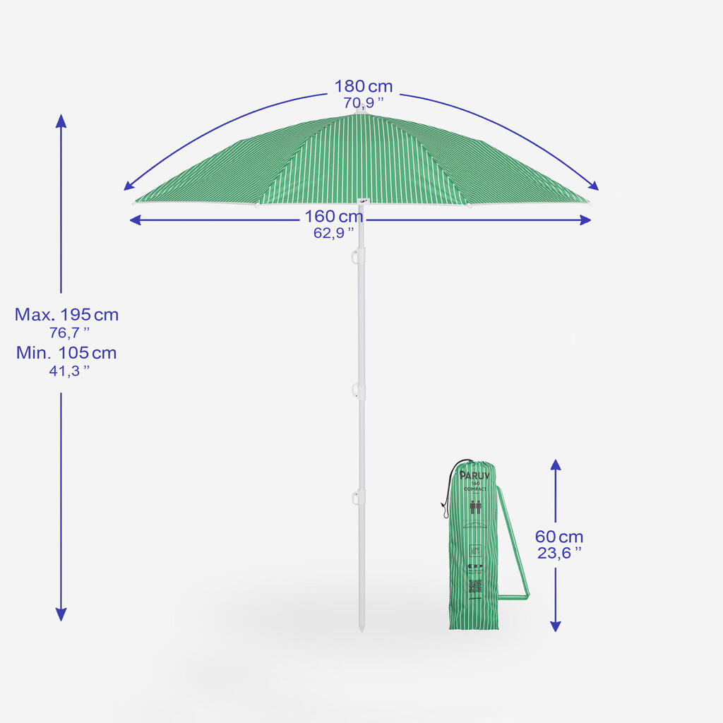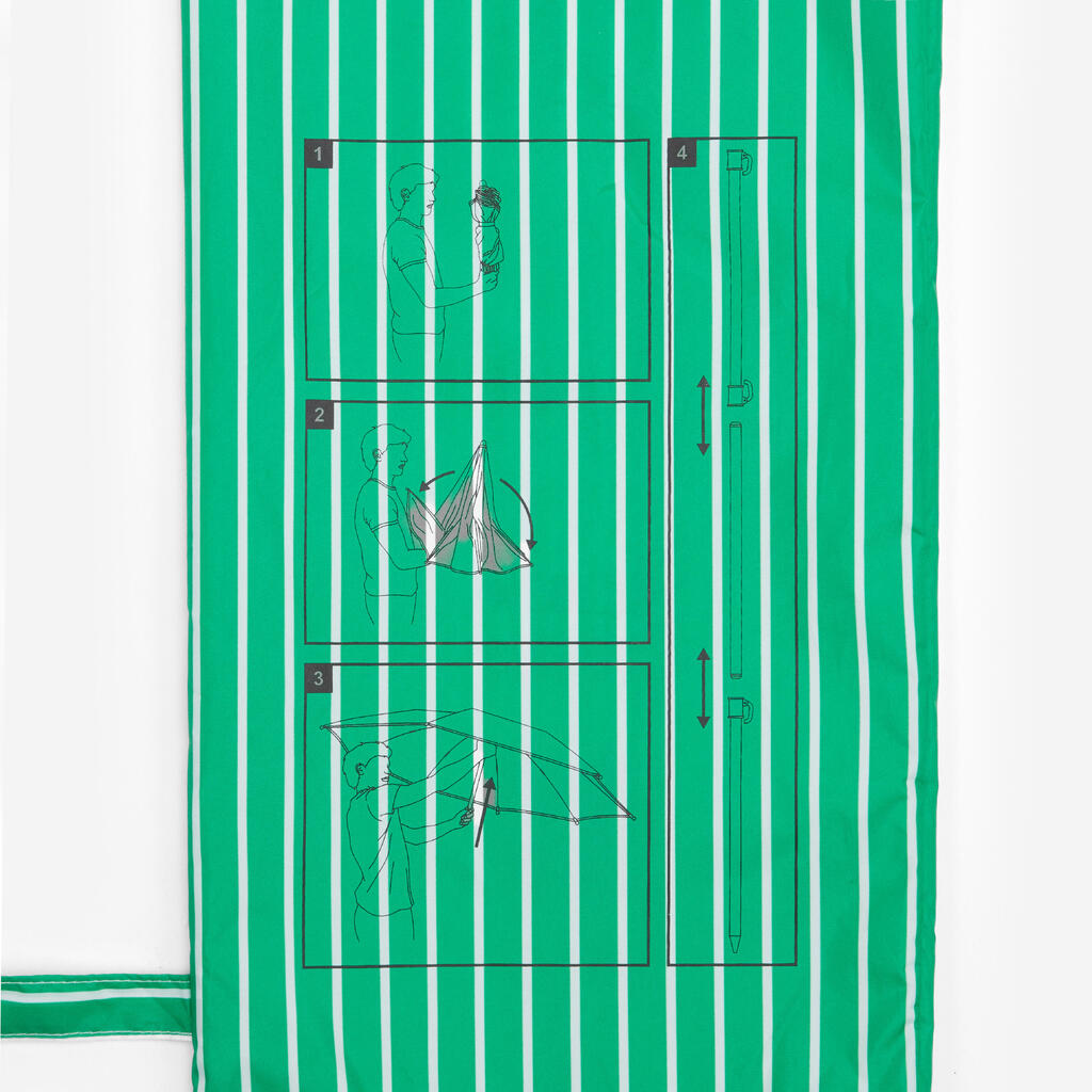 Protégez vous du soleil sur la plage (UPF50+) ! Résiste au vent jusqu'à 20Km/h et abrite jusqu'à 2 adultes.