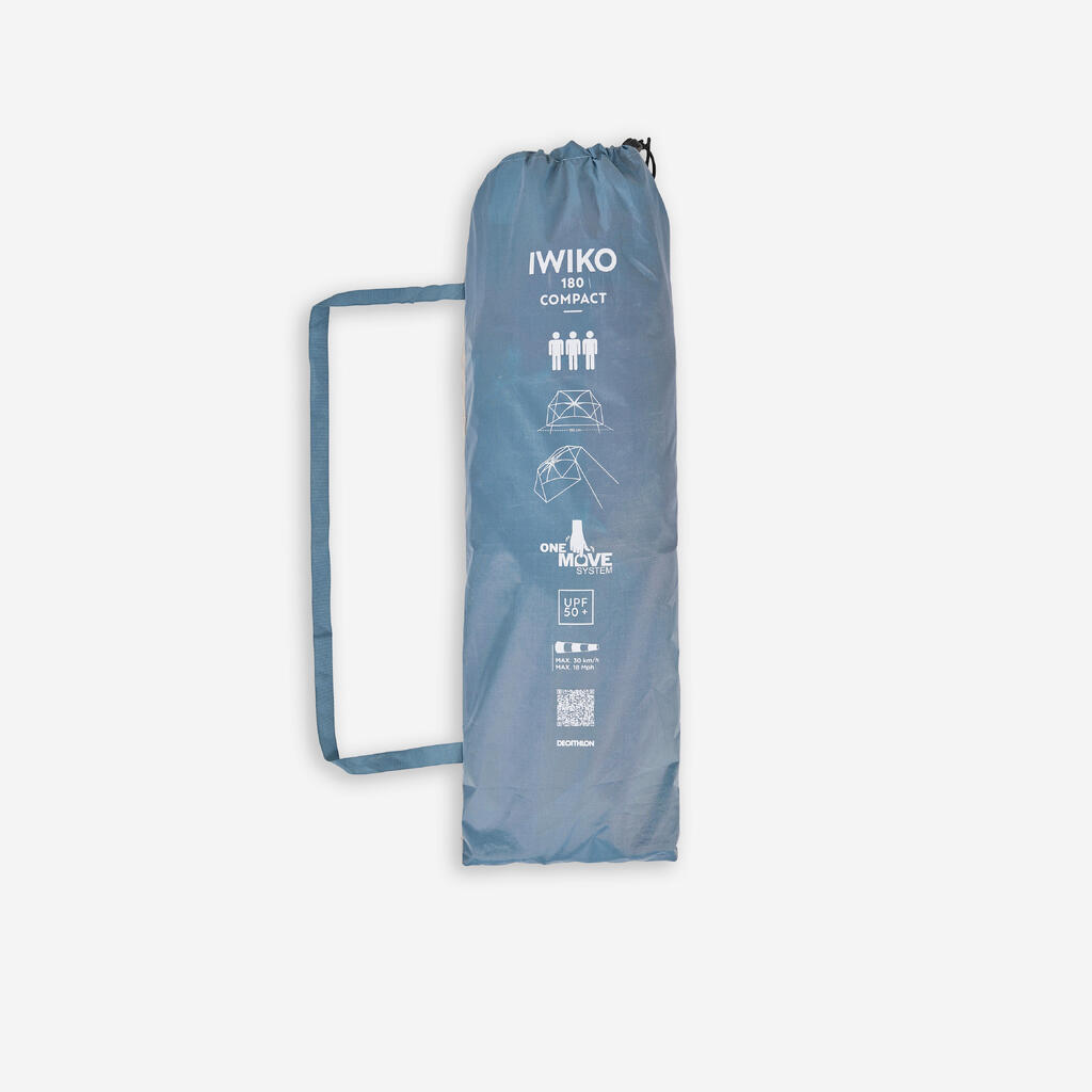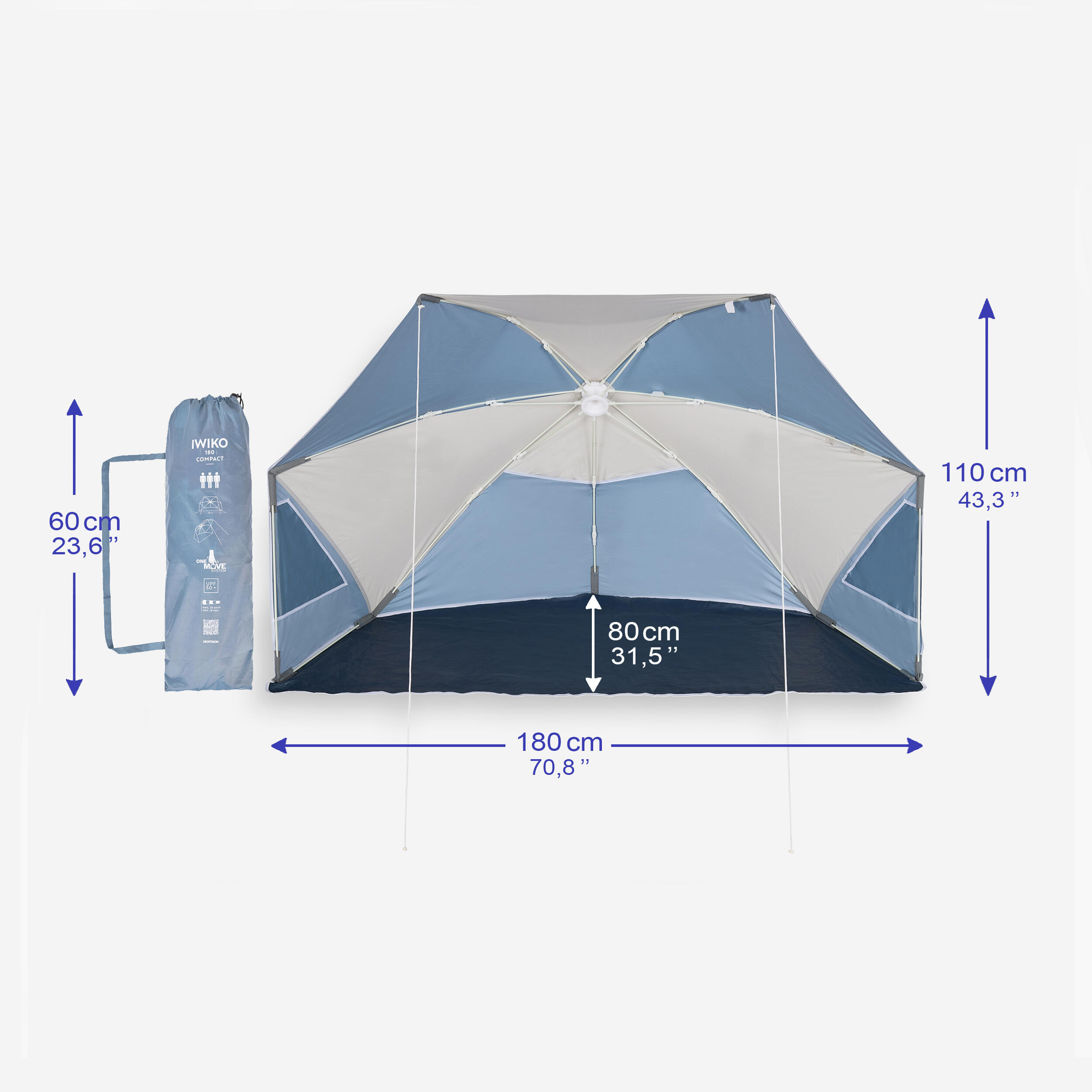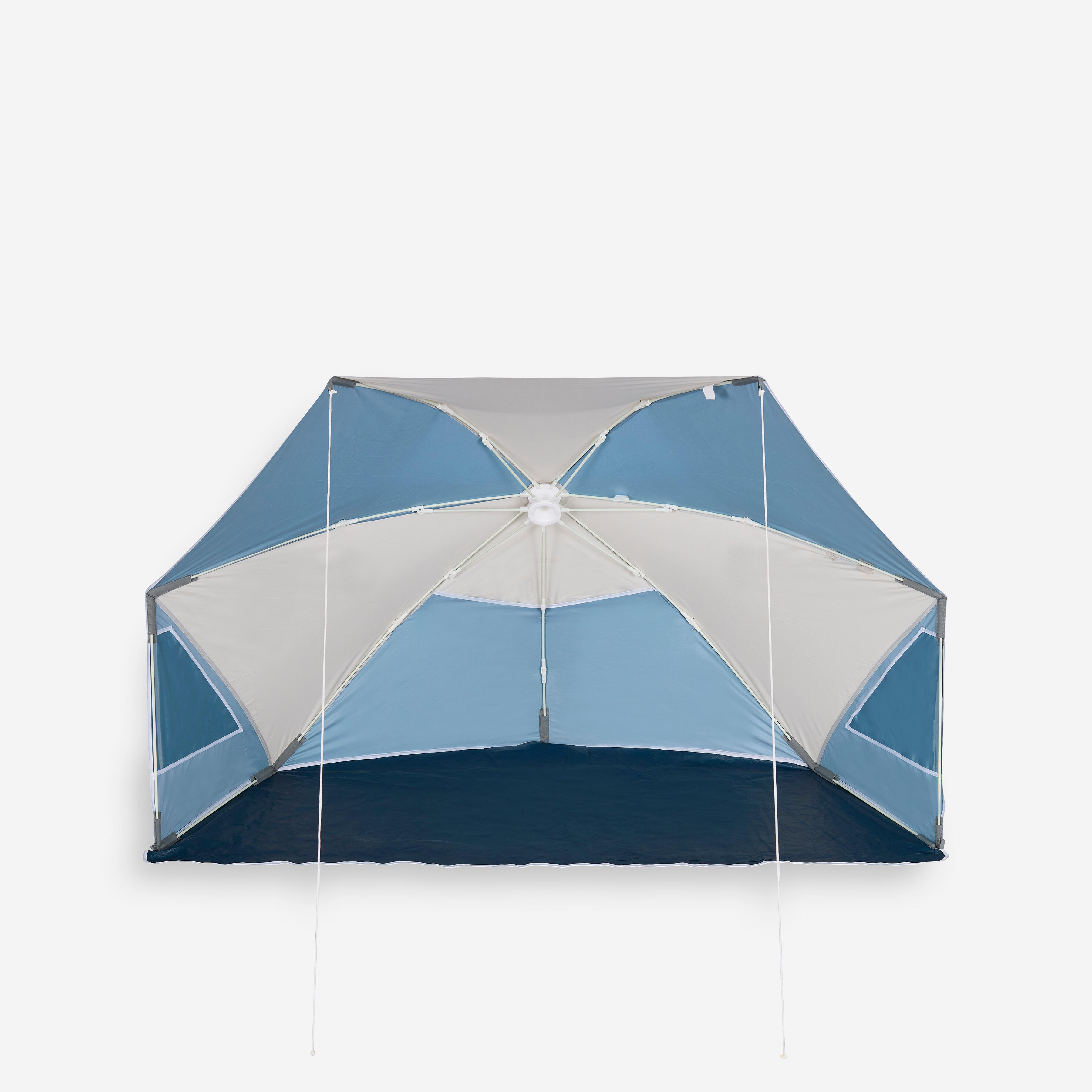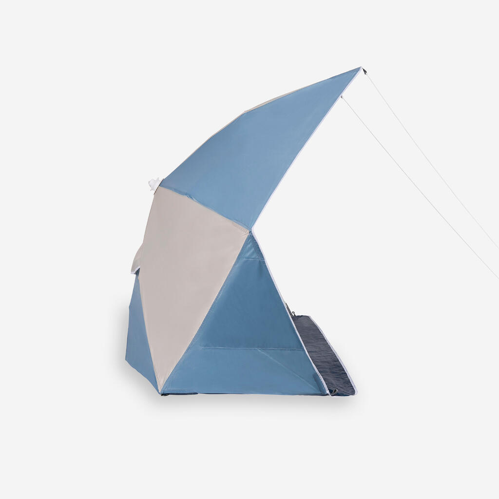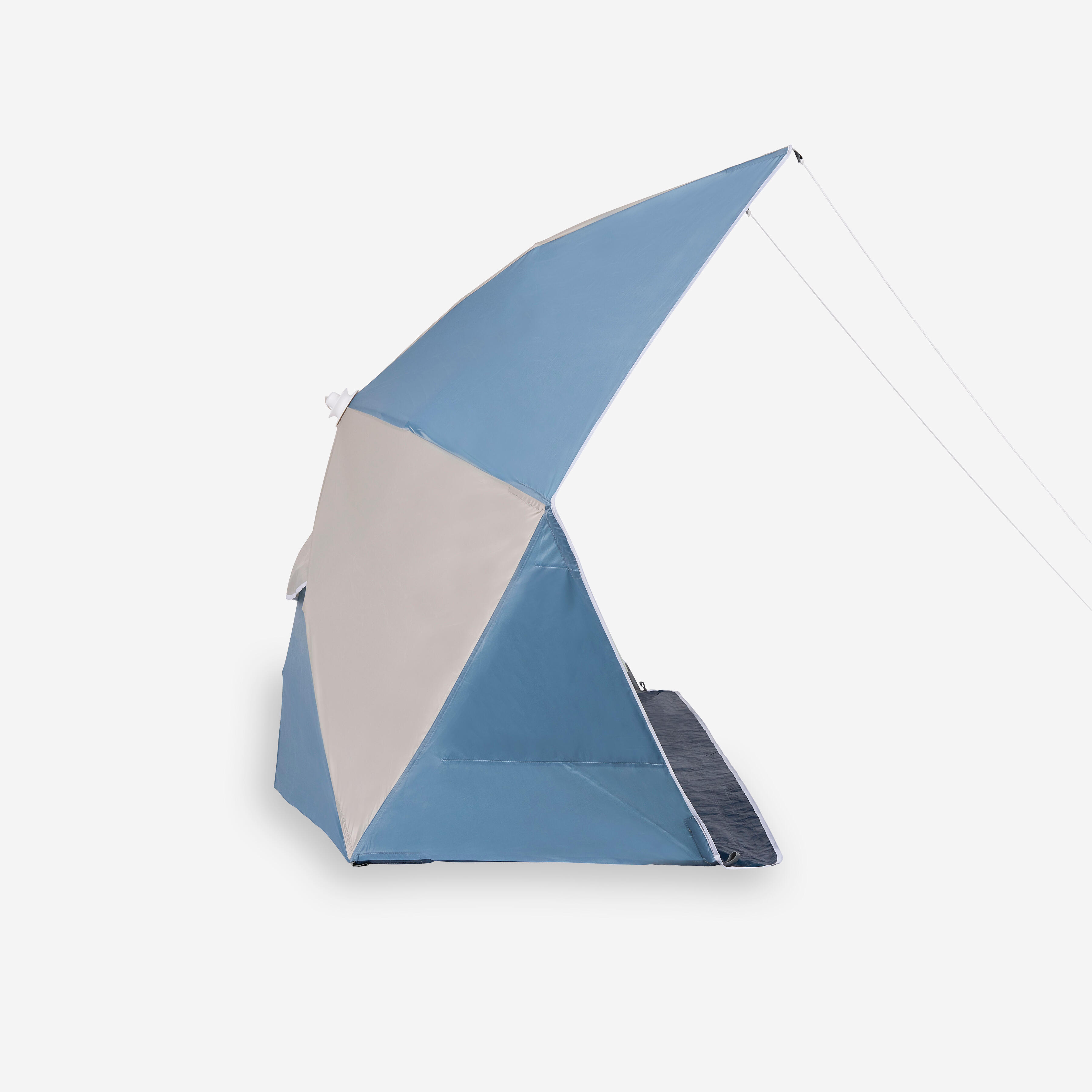 Parasol protecteur (UPF50+) à ouverture facile pop up, conçu pour vos vacances à la mer. Résiste au vent jusqu'à 30km/h, prévu pour 3 places.