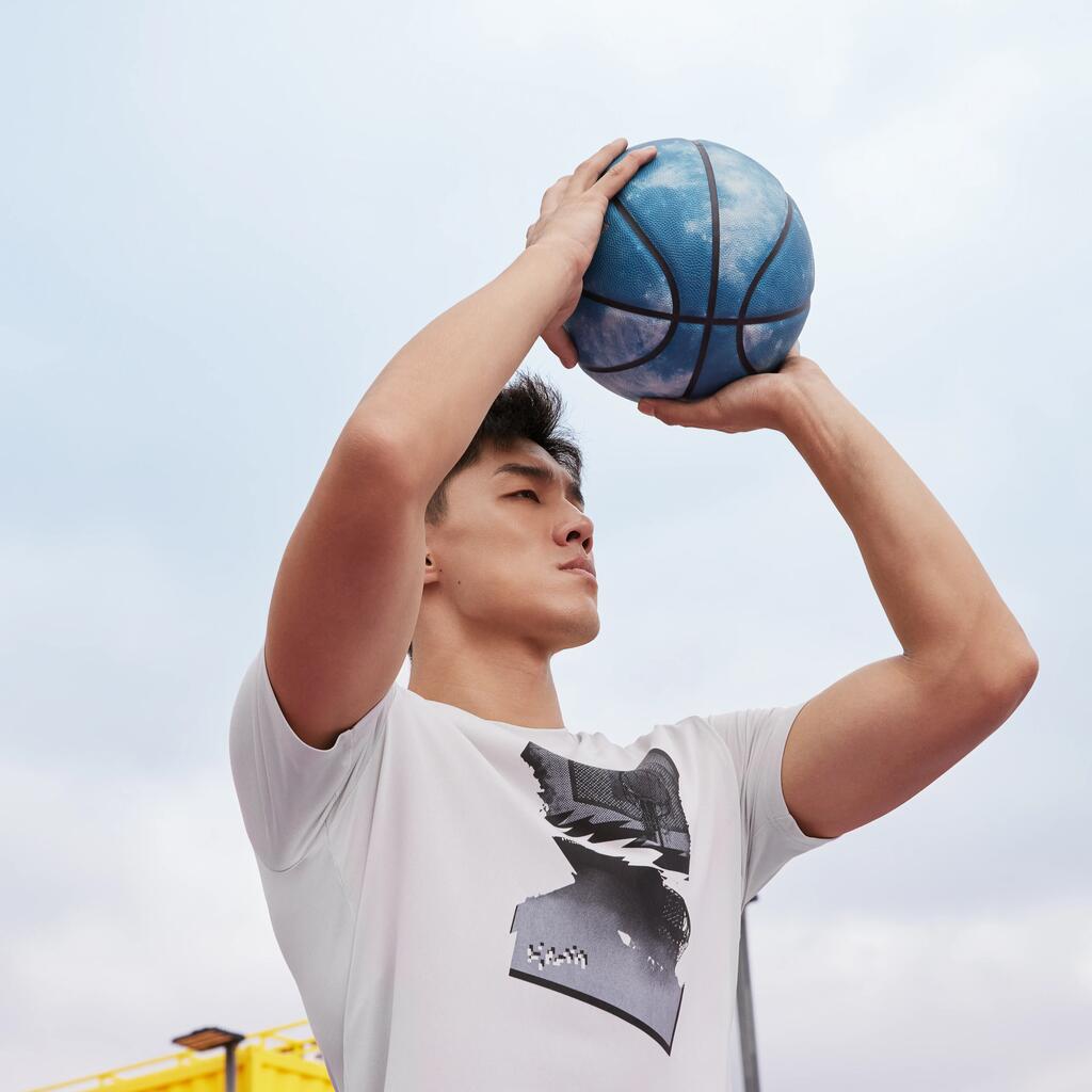 Ballon de basket de taille 7 adapté pour jouer au basket en extérieur et ou en intérieur pour les garçons et hommes à partir de 13 ans selon les règles FIBA.