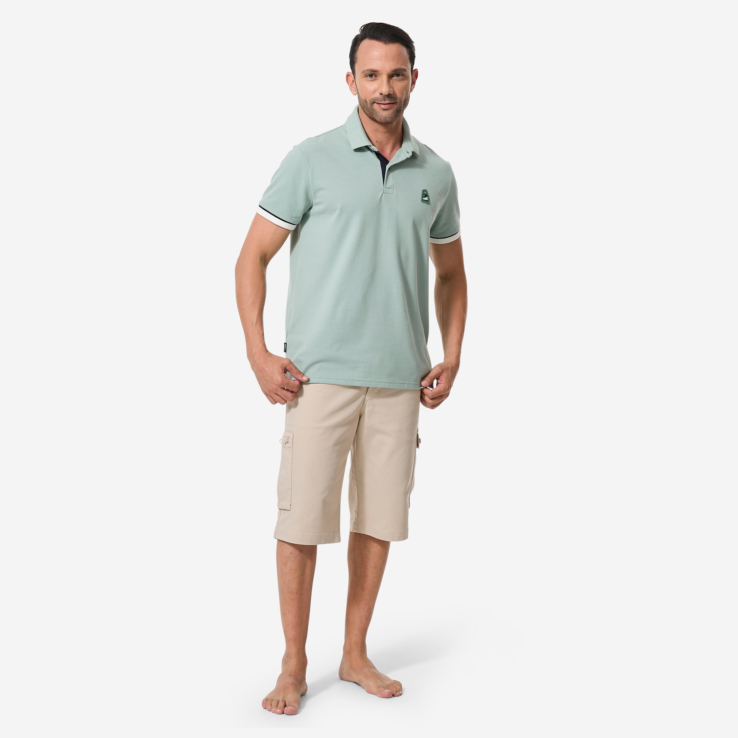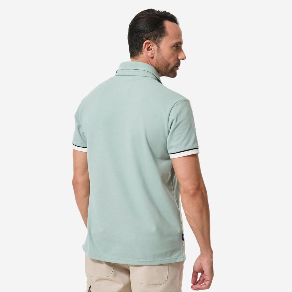 Ce polo marin homme en maille piquée, aérée, léger et extensible vous accompagnera dans vos navigations. Son tissu alliant coton et polyester facilite l'évacuation de la transpiration