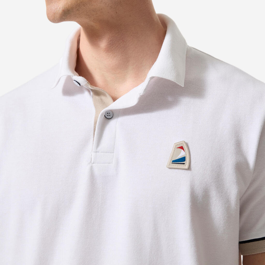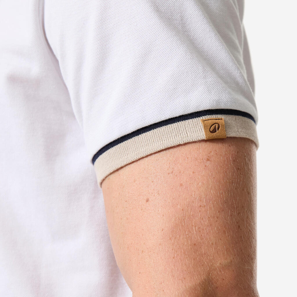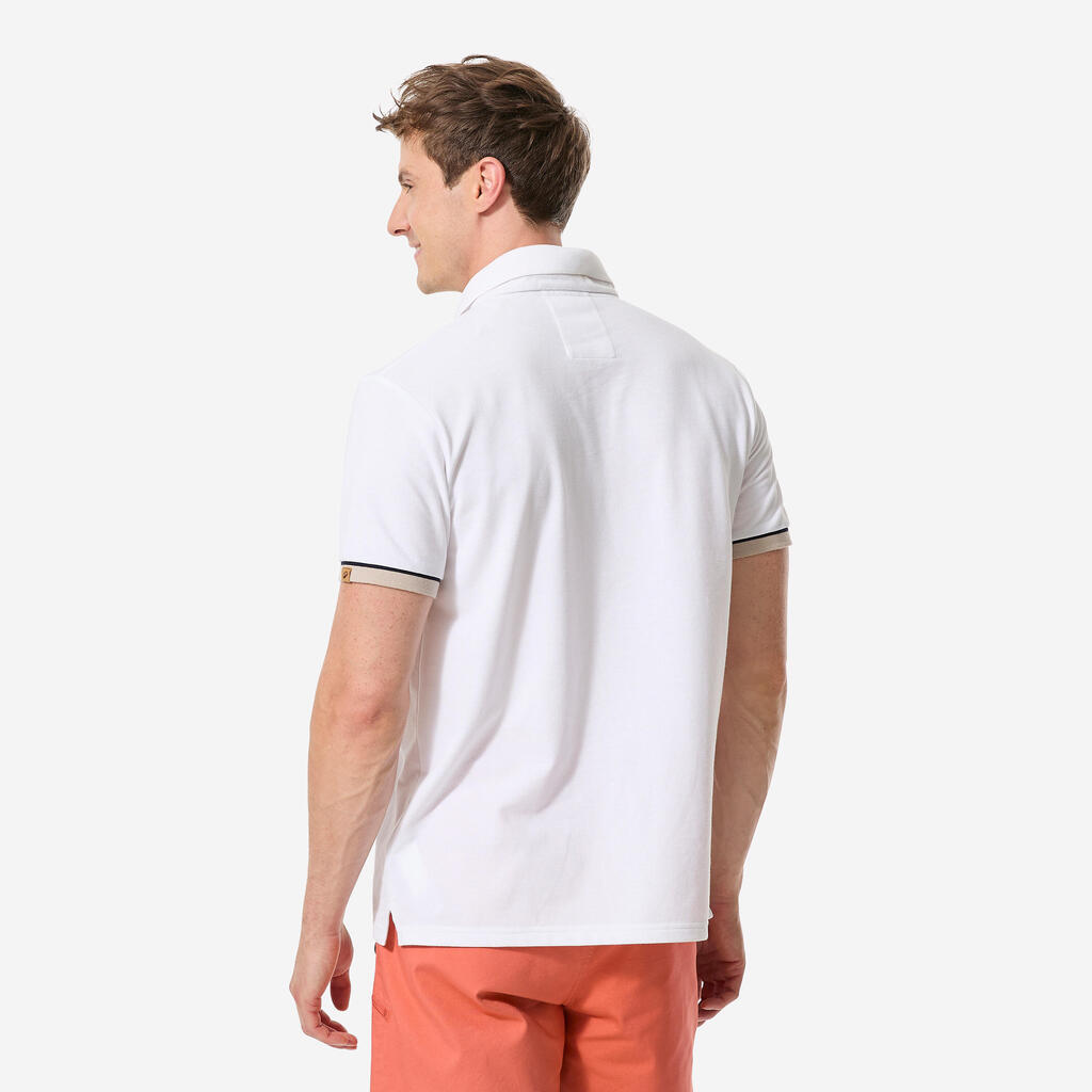 Ce polo marin homme en maille piquée, aérée, léger et extensible vous accompagnera dans vos navigations. Son tissu alliant coton et polyester facilite l'évacuation de la transpiration