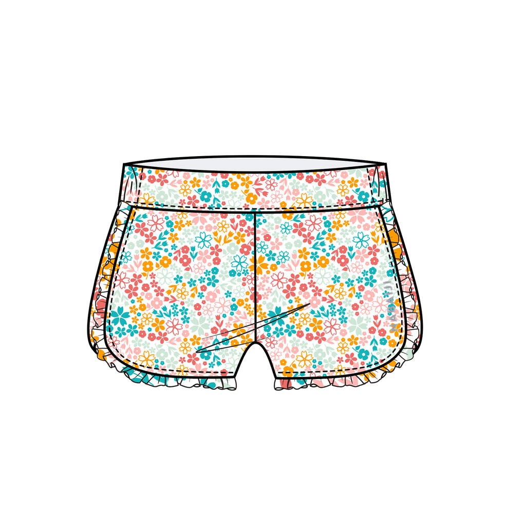 Ce short de bain aux motifs colorés et acidulés est conçu pour les jeunes enfants qui découvrent les plaisirs de l'eau.