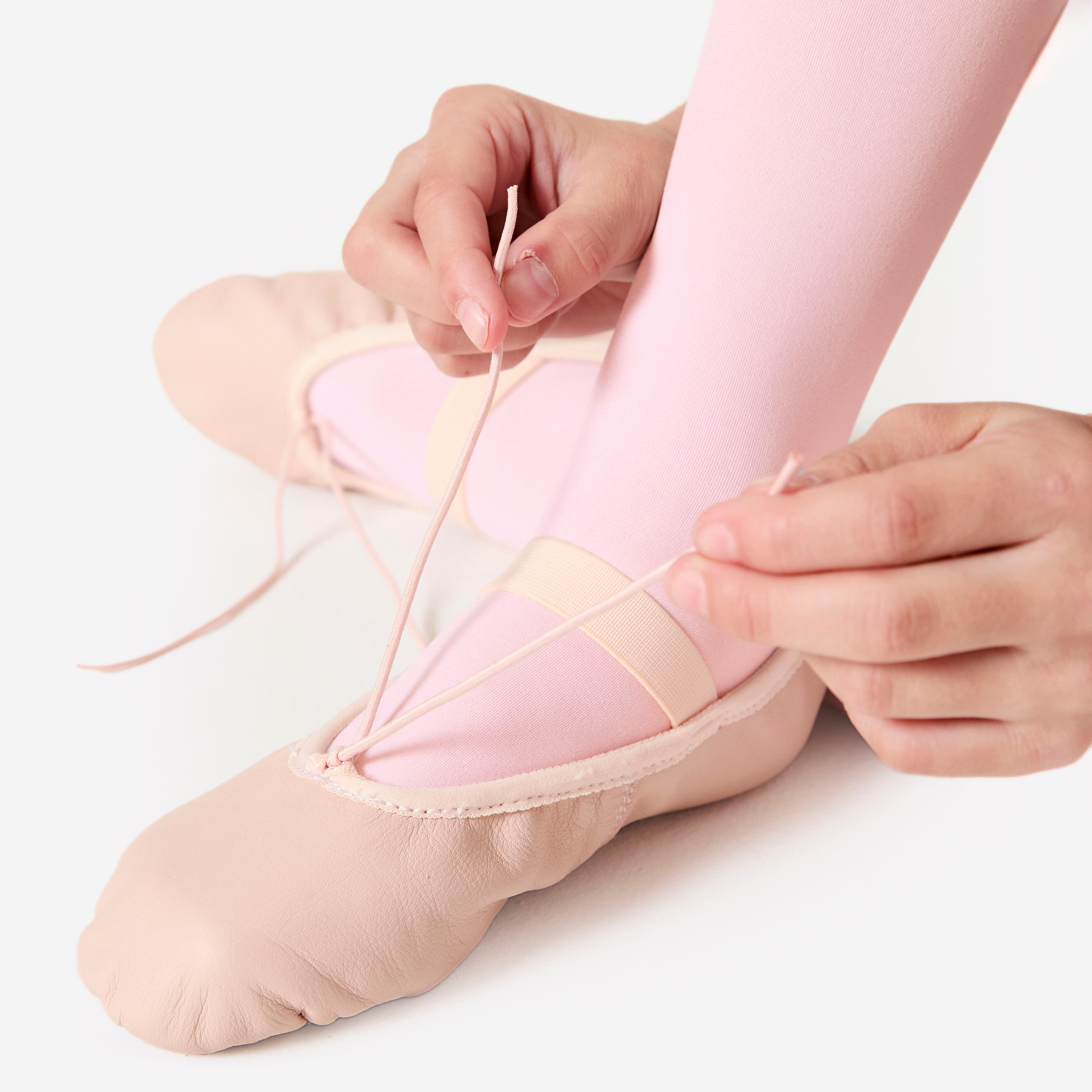 Demi-pointes en cuir de danse classique semelle entière enfant, rose