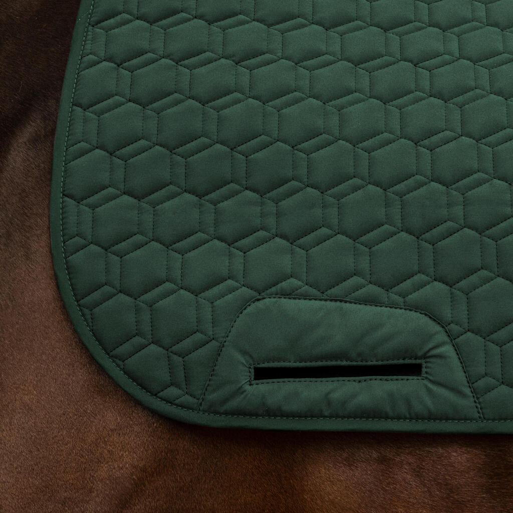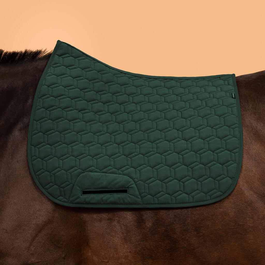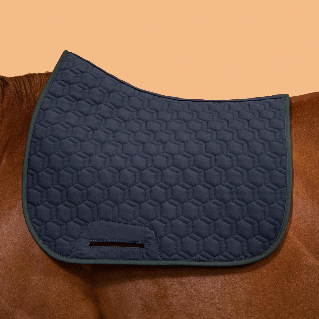 Notre équipe de cavaliers concepteurs a conçu ce tapis 500 réversible pour les cavaliers recherchant un tapis confortable et capable de s'adapter à sa tenue !