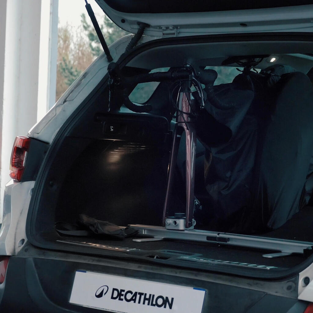 Ce porte-vélos intérieur voiture permet de transporter votre vélo grâce à la fixation pour fourche. Livré avec un seul kit (boitier + housse)