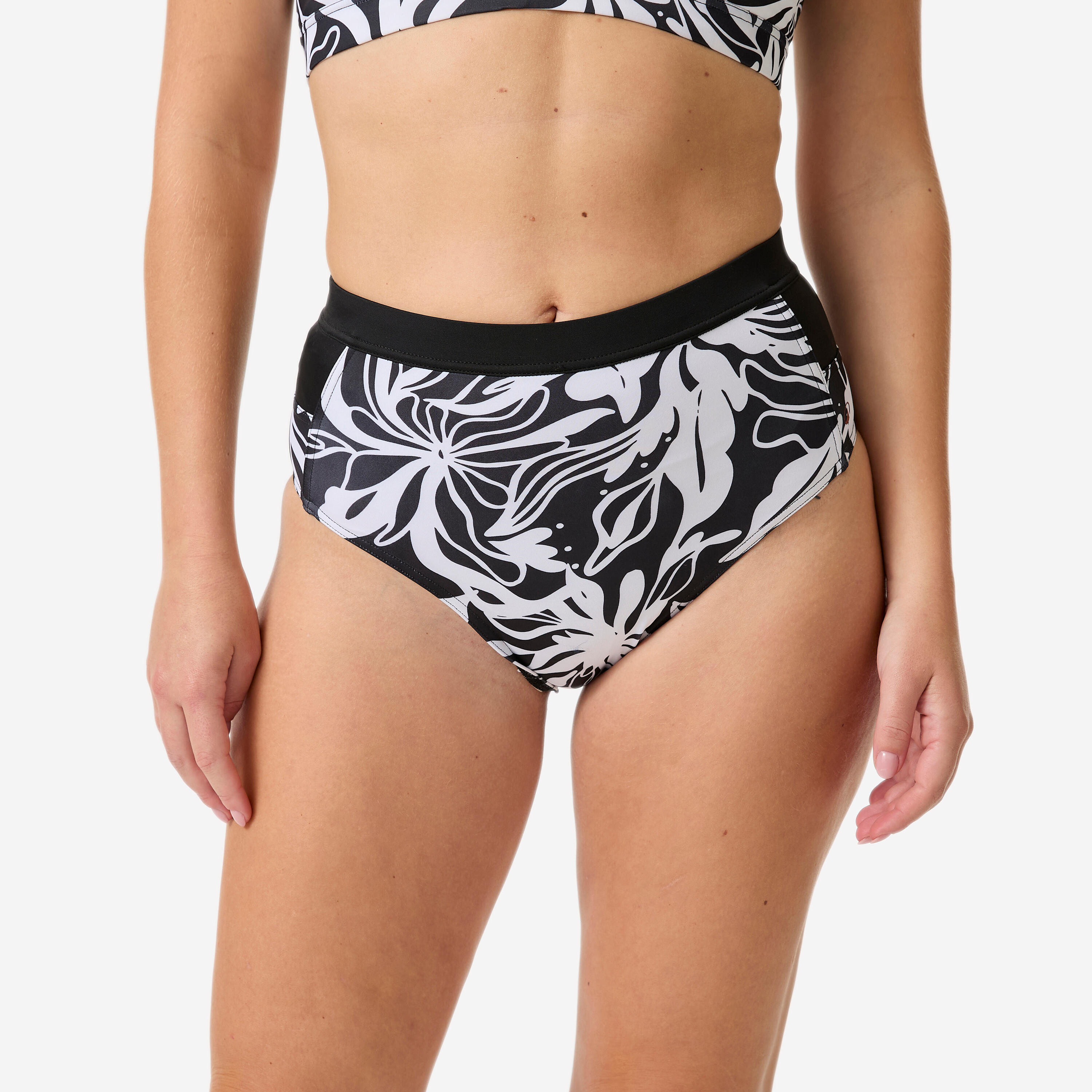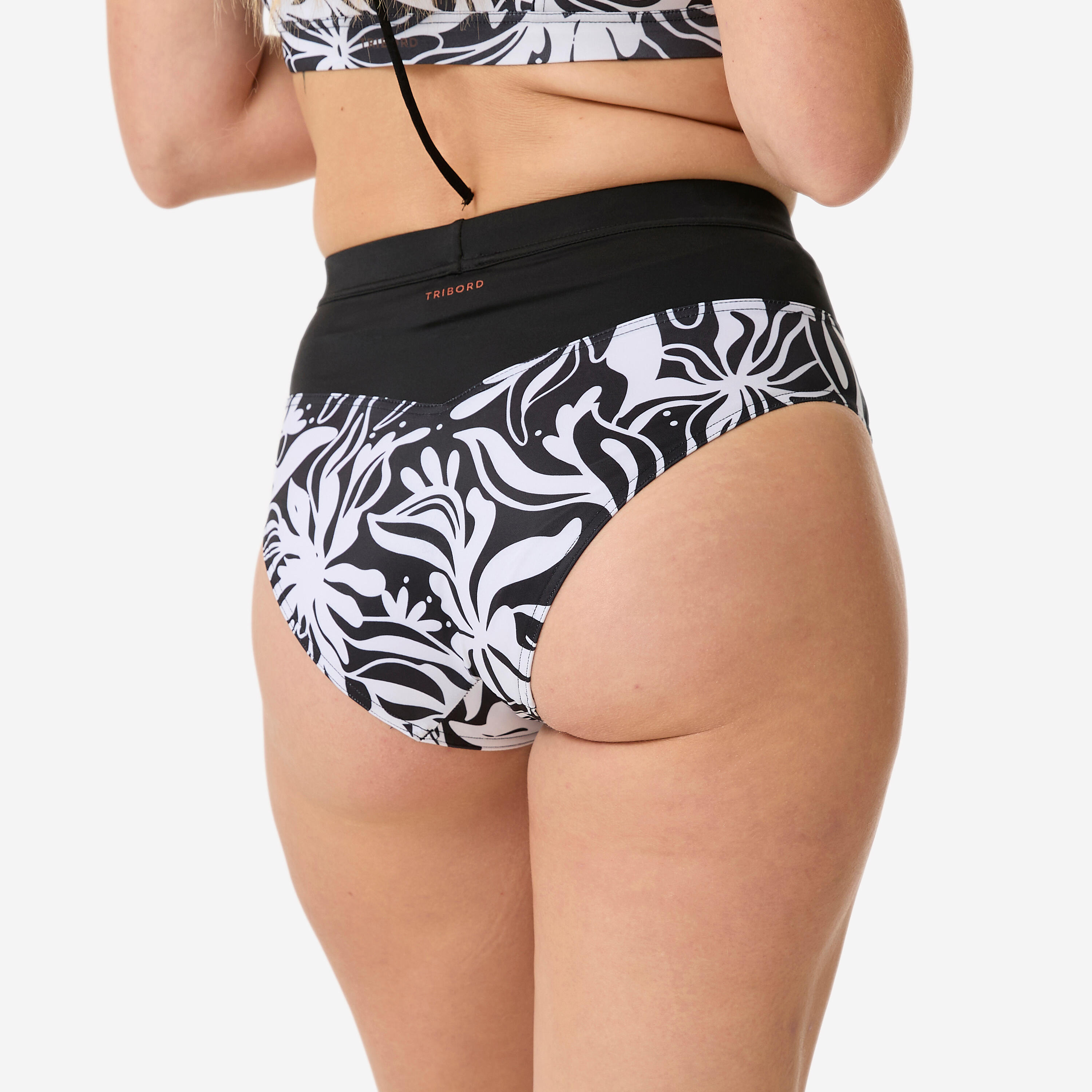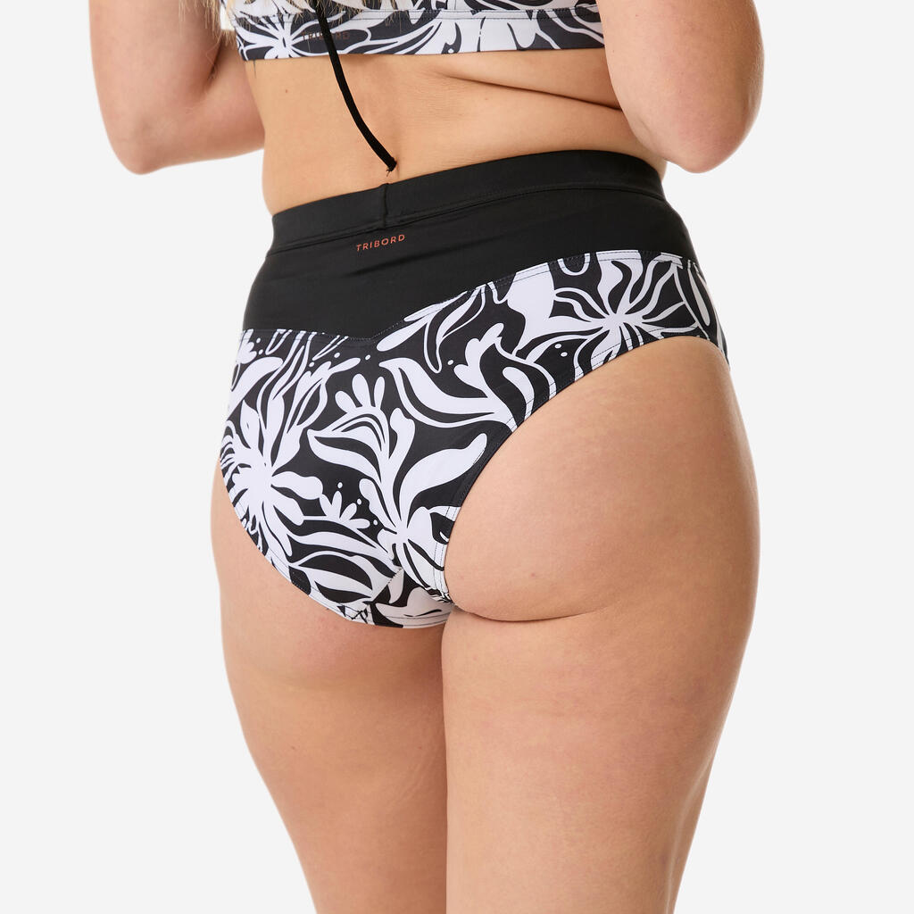 Bas de maillot de bain surf taille haute femme, Rosa Bermeo noir et blanc