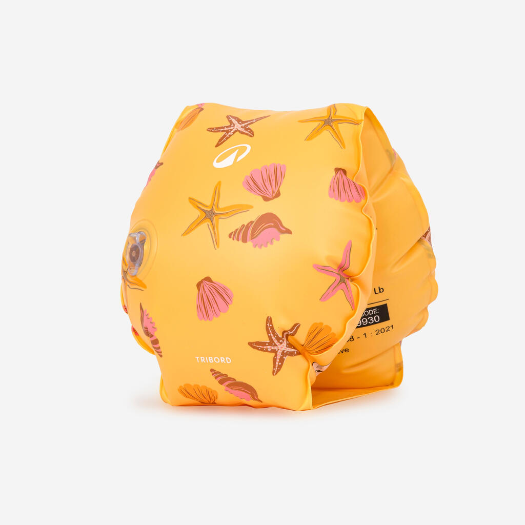 Ces brassards de piscine conviennent aux enfants de 11 à 30 kg qui effectuent leurs premiers déplacements aquatiques. C'est la phase de découverte de l'eau.