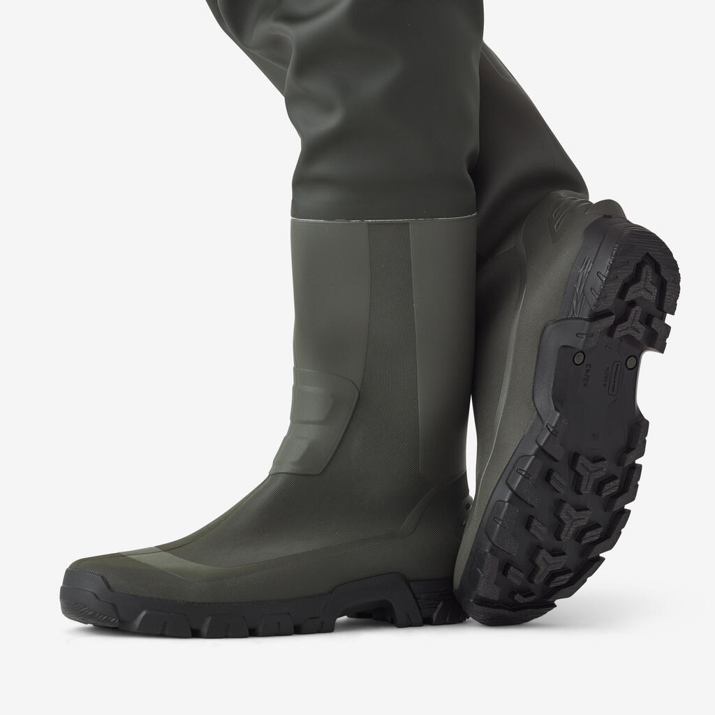 Nos équipes ont développé ces waders résistants en PVC pour vous permettre de pêcher en wading en restant au sec jusqu'à la poitrine par temps tempéré.