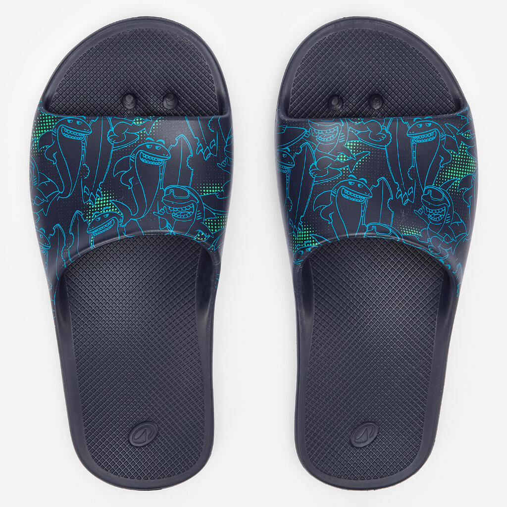 Des claquettes de piscines faciles à enfiler, conçues pour les enfants qui souhaite couvrir leurs pieds et limiter les risques de glissade au bord des bassins.