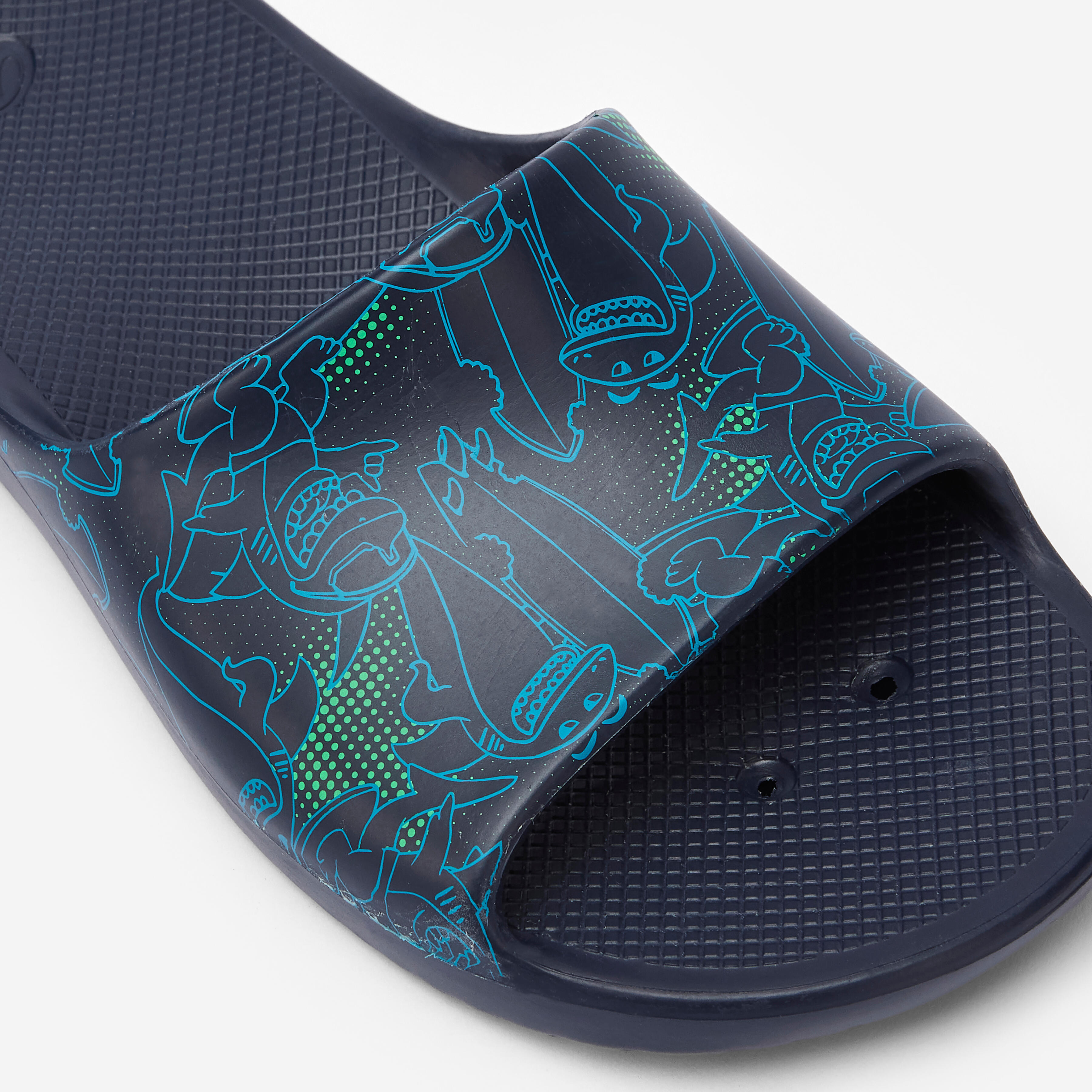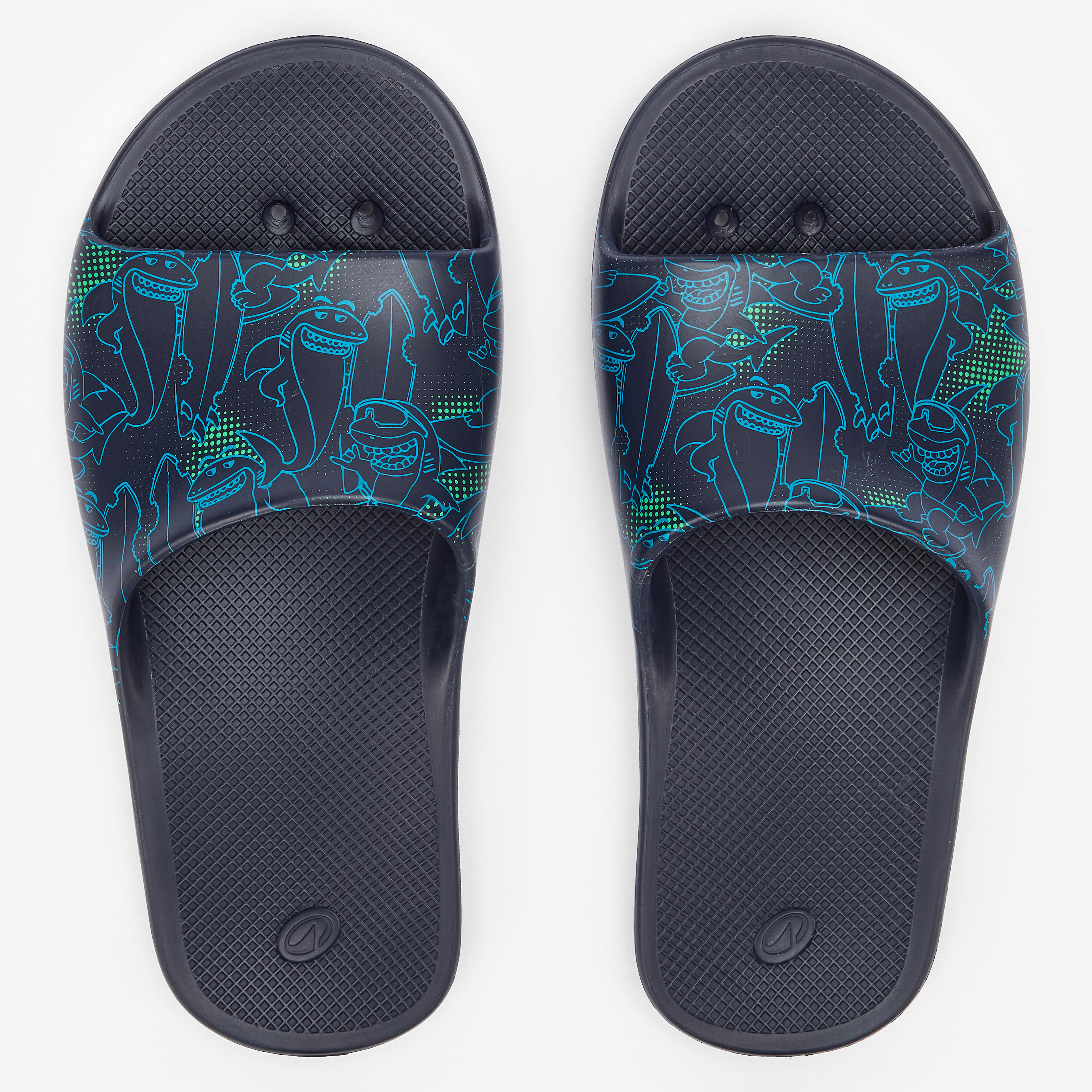 Ces claquettes de piscine enfant possèdent une semelle perforée qui évacue l'eau. Conçues pour les bassins chlorés mais peuvent convenir pour la plage !