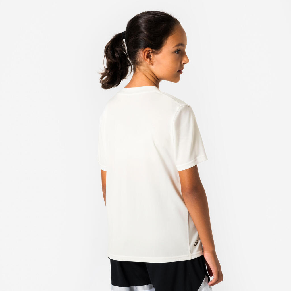La fibre en polyesther de ce t-shirt permet d'évacuer rapidement la transpiration et de garder votre enfant au sec. Sa construction offre également une complète liberté de mouvement.