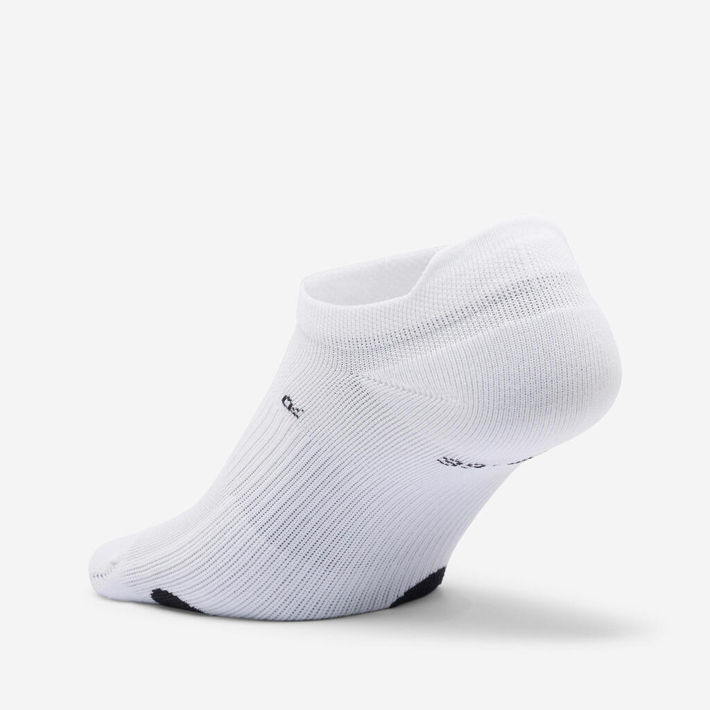 Ces chaussettes invisibles répondent aux besoins du fitness : zones renforcées anti-ampoules, maintien au talon et évacuation de la transpiration