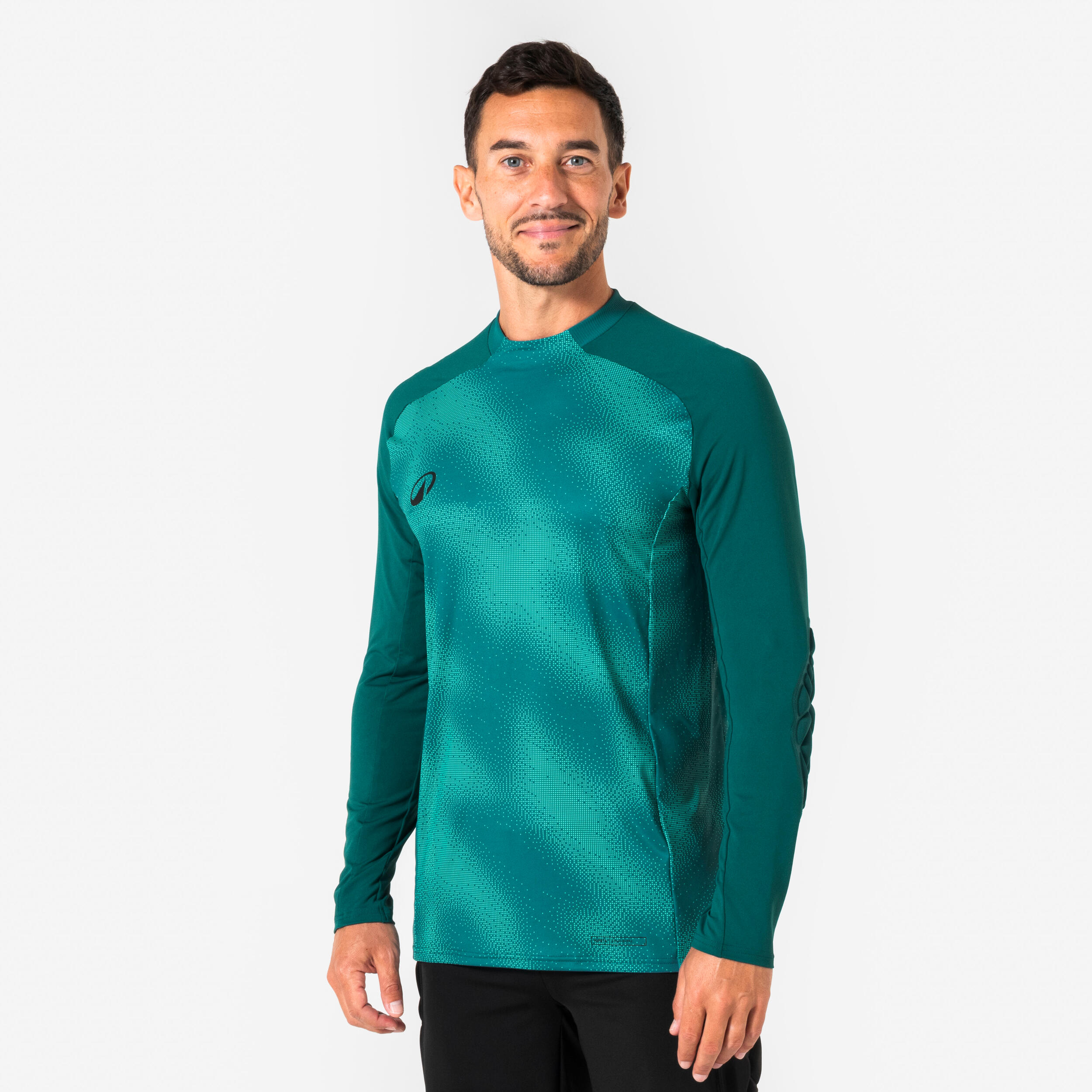 Avec des pads thermocompressés placés au niveau des coudes, ce maillot de gardien de but de foot absorbe les chocs. Il protège lors des plongeons.