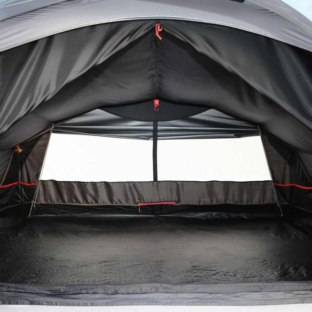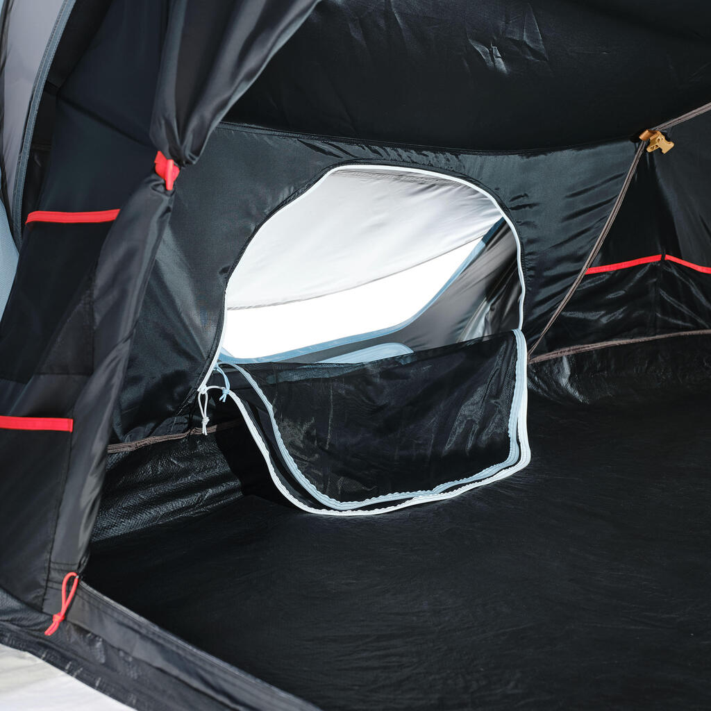 La porte de la chambre, équipée d'un zip en forme de T, permet de sortir et entrer facilement où que l'on soit dans la tente, sans déranger ses compagnons de chambre. Elle permet également de maintenir l'obscurité à l'intérieur, même lorsque la porte est ouverte !