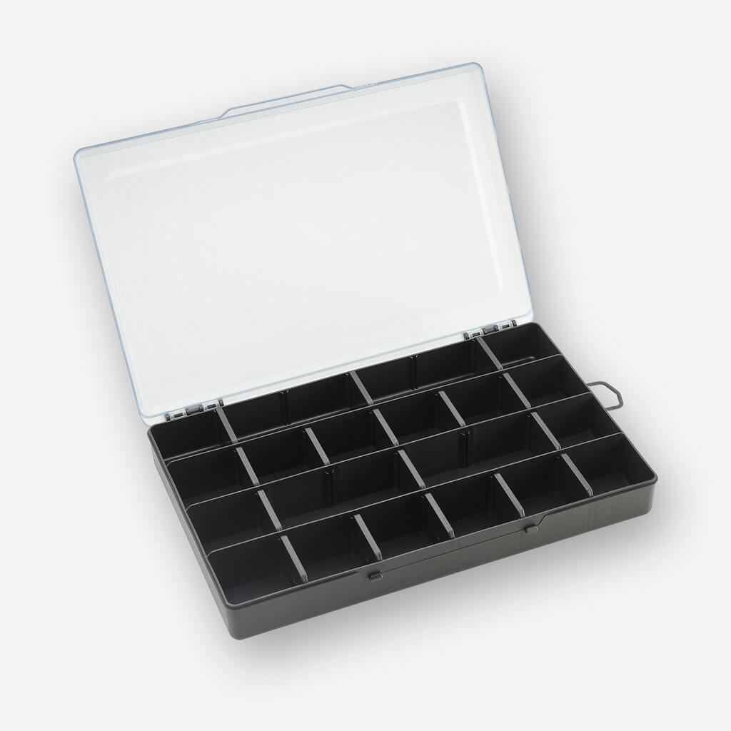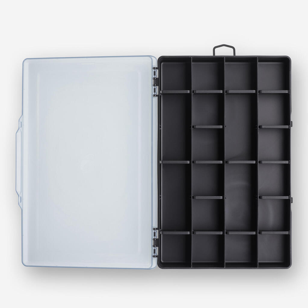 Cette boite entièrement modulable permet de ranger la plupart de vos accessoires et vos leurres. Compacte et pratique, elle se transporte facilement au bord de l'eau.