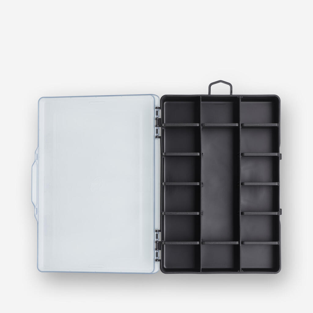 Cette boite entièrement modulable permet de ranger la plupart de vos accessoires et vos leurres. Compacte et pratique, elle se transporte facilement au bord de l'eau.