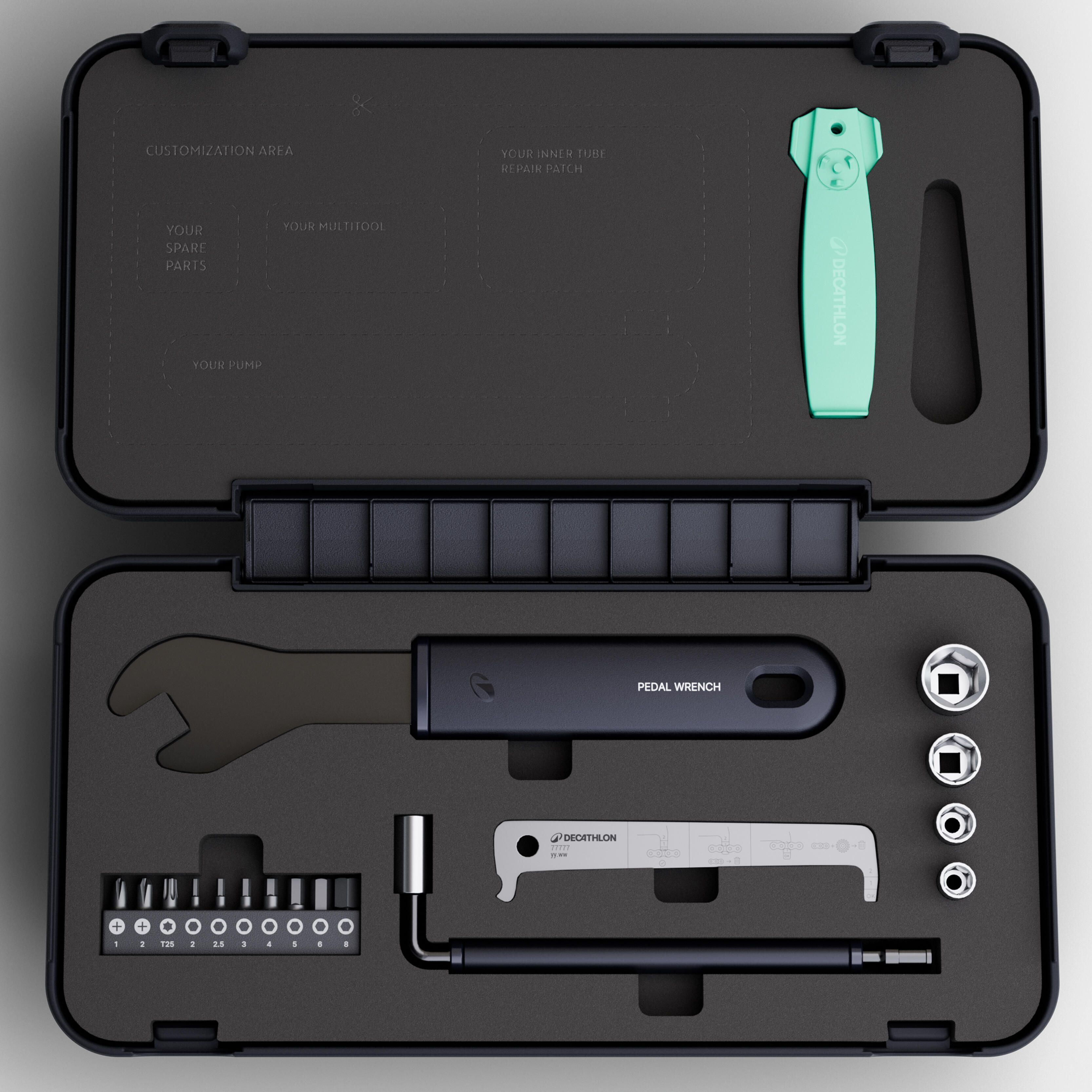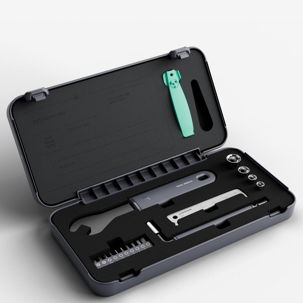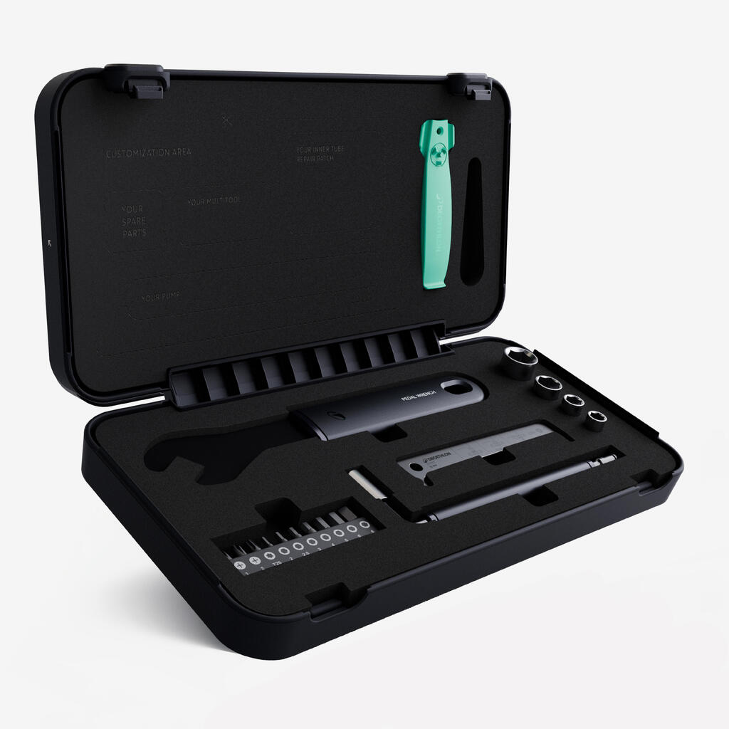 La boîte Start permet de réparer une crevaison, régler selle ou dérailleur, changer pédales ou pneu.