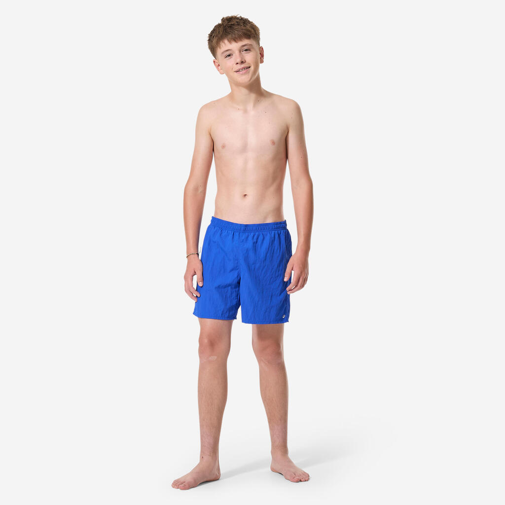 Pour la natation, les loisirs ou les vacances, ce short de bain uni très résistant au chlore conviendra aux jeunes nageurs en quête de confort et de simplicité.