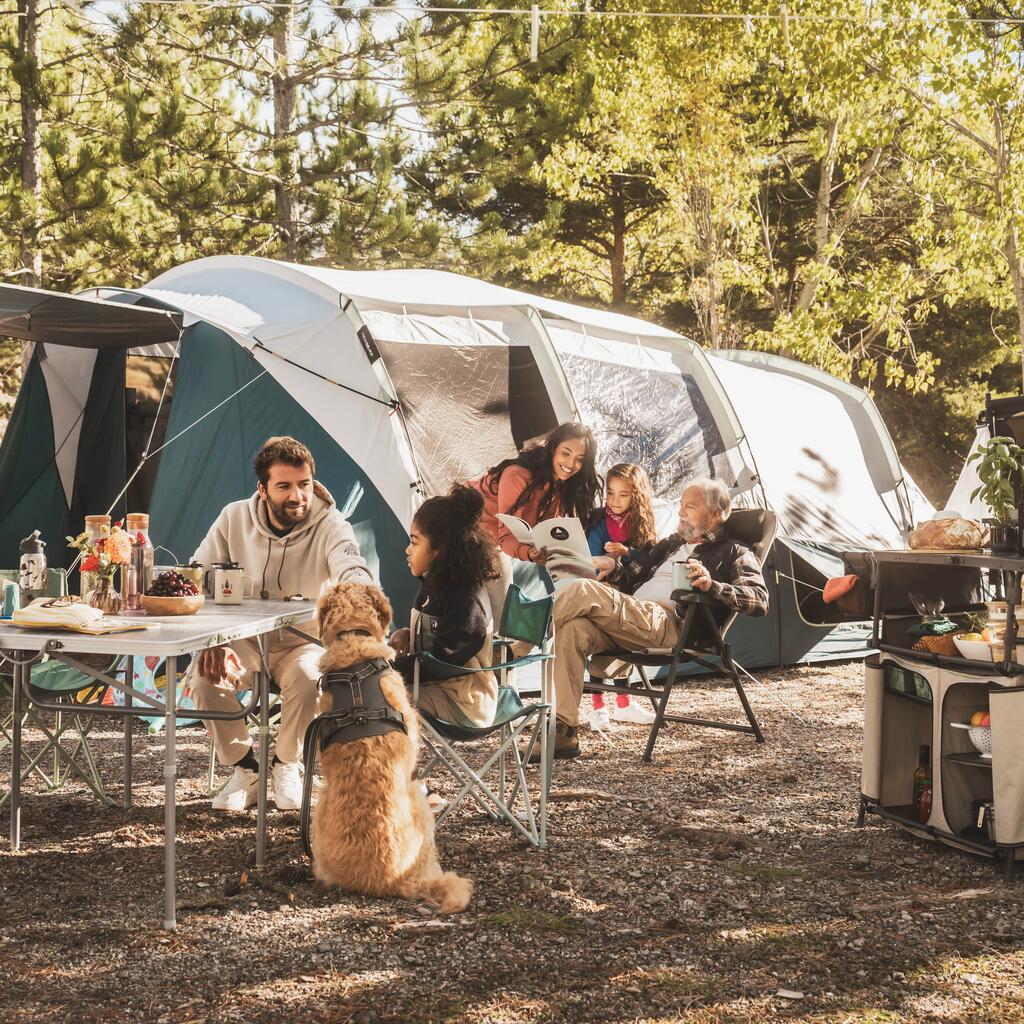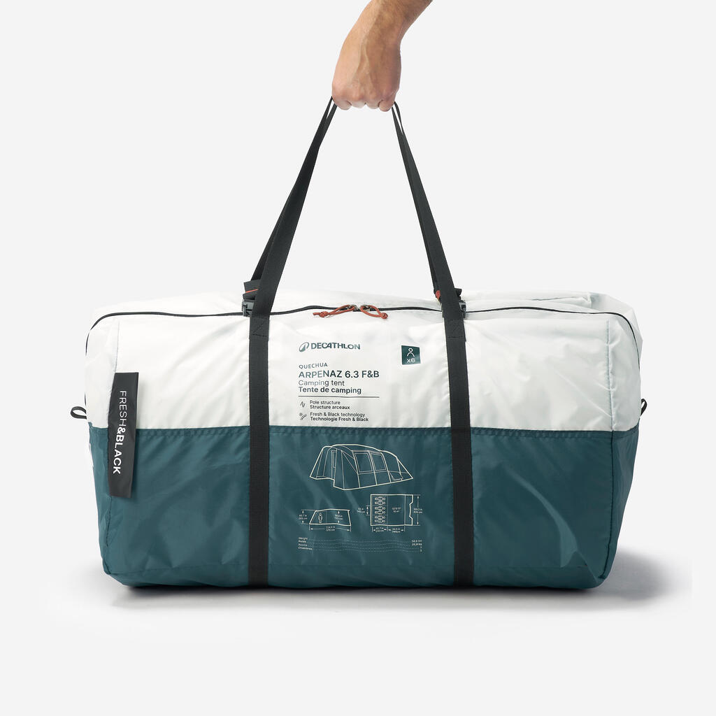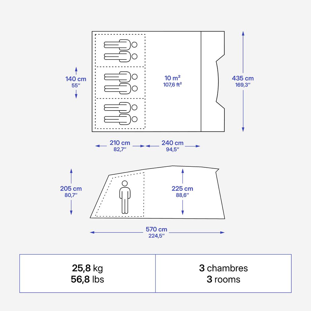 Ajoutez deux couchages supplémentaires avec la chambre additionnelle pour tente Arpenaz 6.3 F&B (vendu séparément), référence : 8605708.