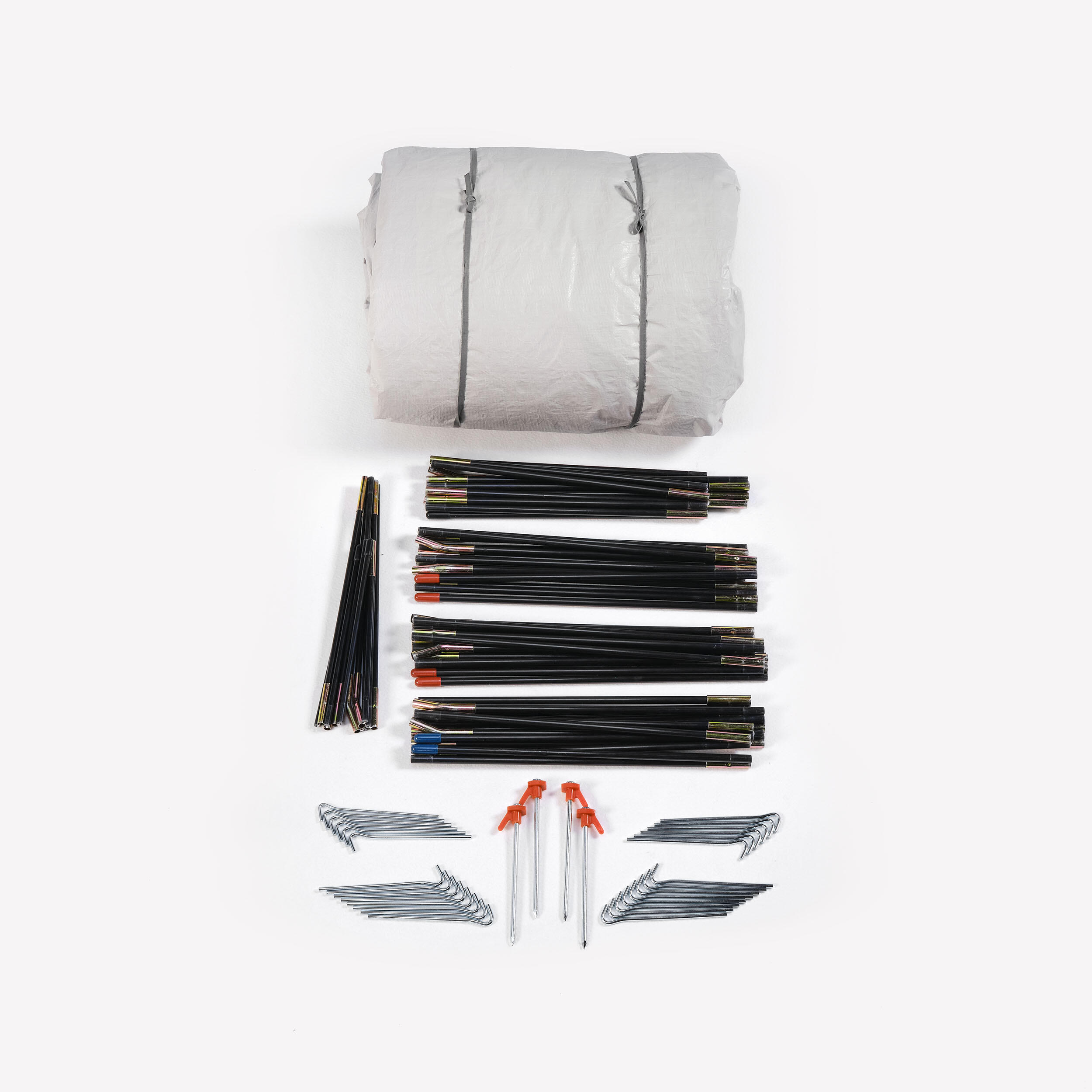 Structure à arceaux tout-en-un avec chambres et double-toit pré-montés.