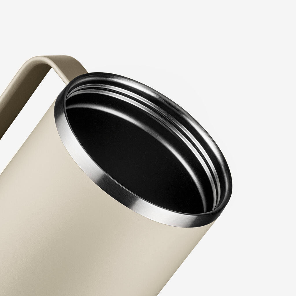 Notre mug isotherme 1L double paroi inox maintient vos boissons chaudes ou fraîches. Savourez votre boisson, où que vous soyez, même dans votre voiture