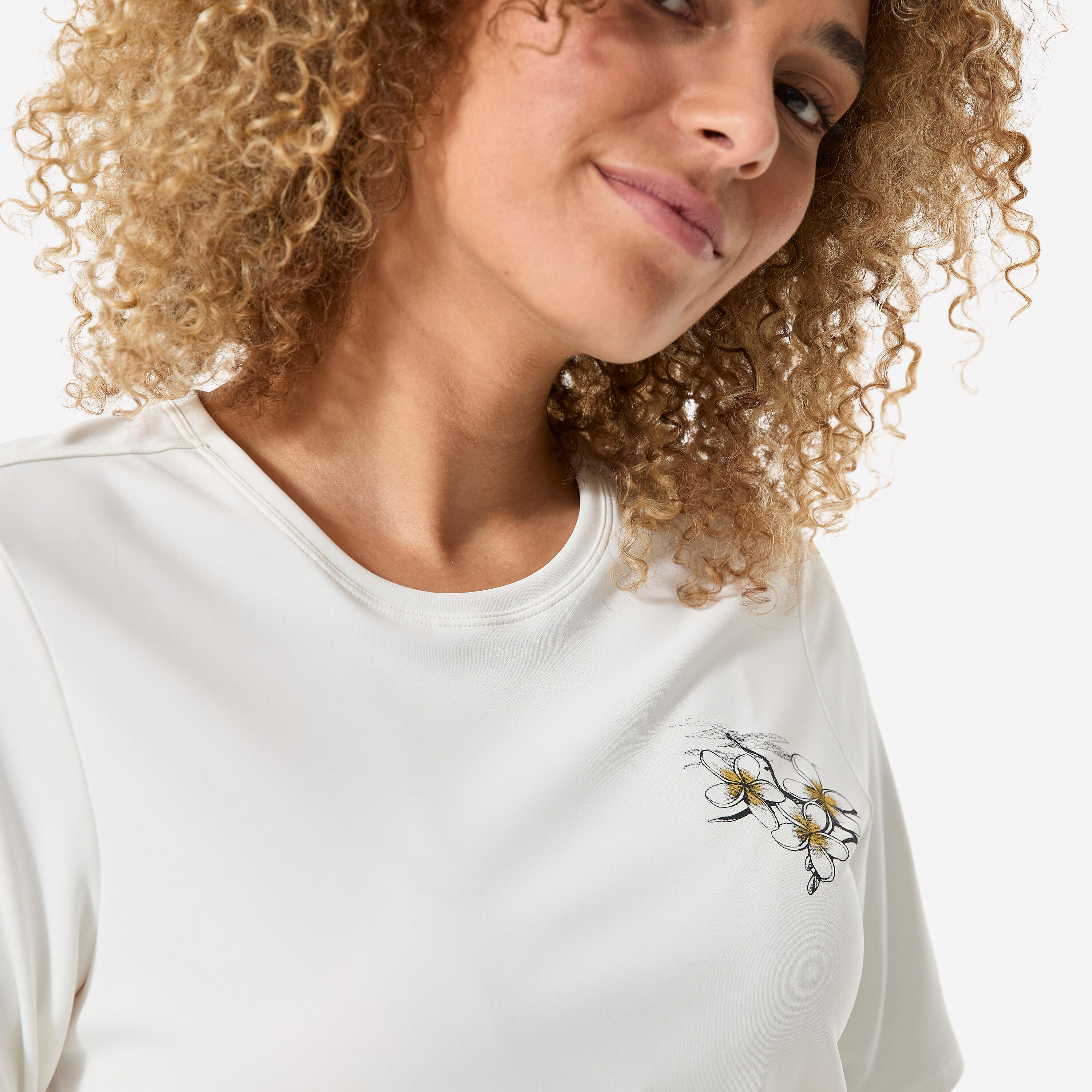 Ce tee shirt anti UV à manches courtes accompagne les surfeuses débutantes dans leurs sessions estivales.