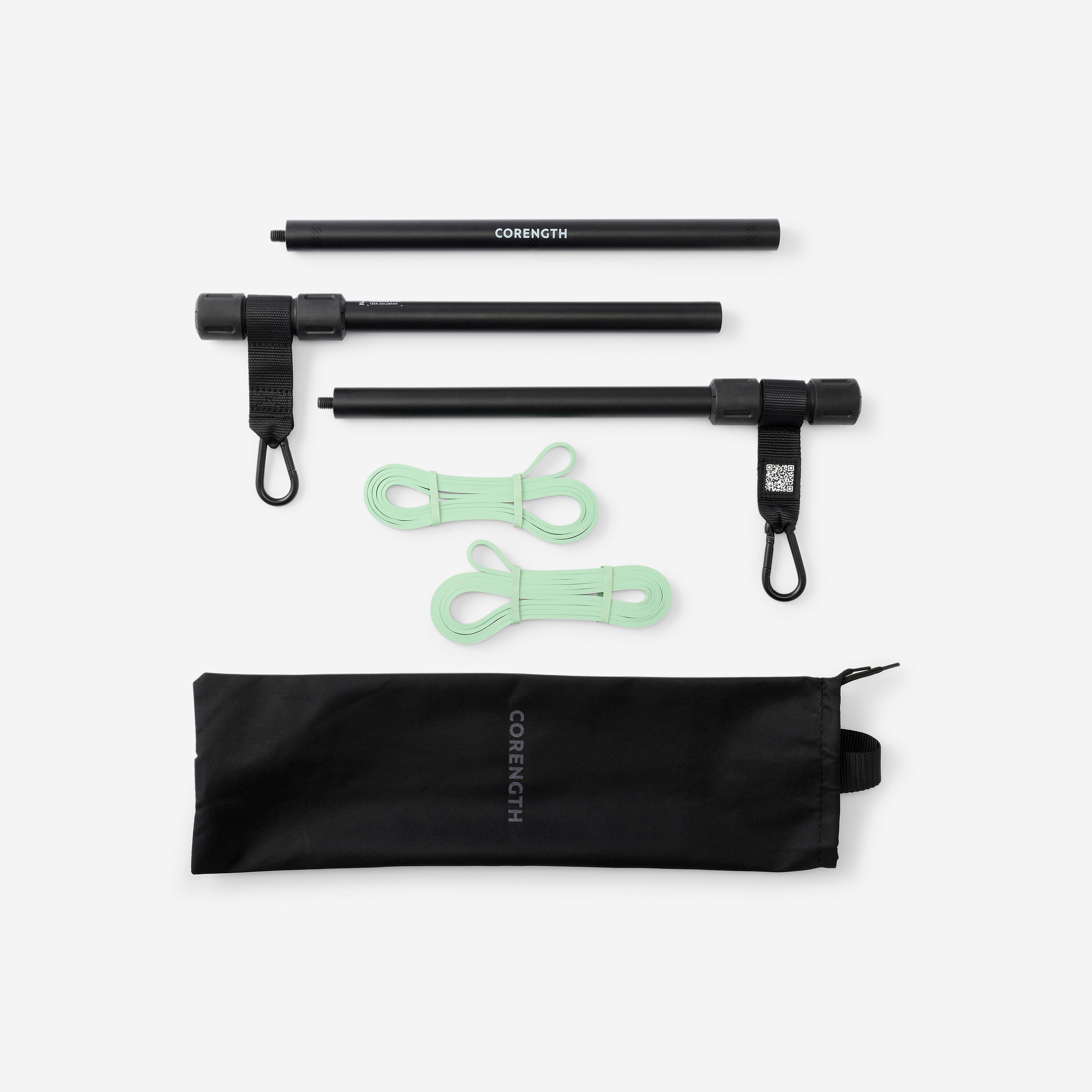 Barre de musculation nomade avec 2 élastiques 10kg : squat, fente, développé, tirage… Variez votre training fitness ! Facilement transportable, elle s'adapte aussi aux élastiques jusqu'à 35kg.